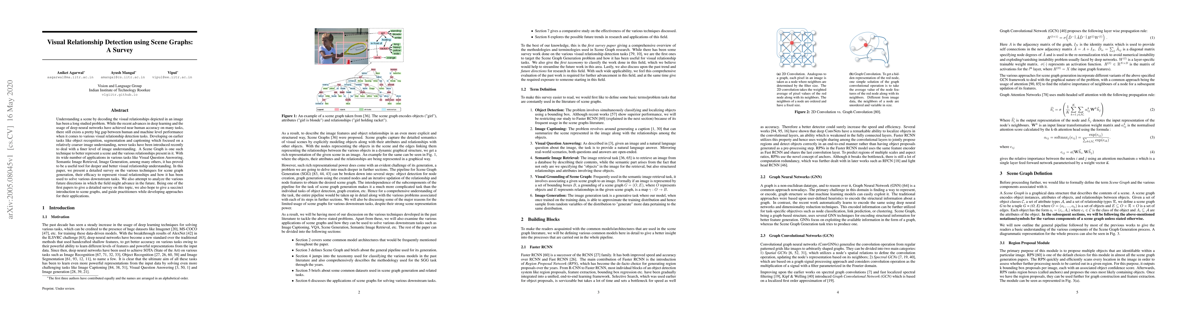 Understanding a scene by decoding the visual relationships depicted in an image has been a long studied problem. While the recent advances in deep learning and the usage of deep neural networks have achieved near human accuracy on many tasks, there still exists a pretty big gap between human and machine level performance when it comes to various visual relationship detection tasks. Developing on earlier tasks like object recognition, segmentation and captioning which focused on a relatively coarser image understanding, newer tasks have been introduced recently to deal with a finer level of image understanding. A Scene Graph is one such technique to better represent a scene and the various relationships present in it. With its wide number of applications in various tasks like Visual Question Answering, Semantic Image Retrieval, Image Generation, among many others, it has proved to be a useful tool for deeper and better visual relationship understanding. In this paper, we present a detailed survey on the various techniques for scene graph generation, their efficacy to represent visual relationships and how it has been used to solve various downstream tasks. We also attempt to analyze the various future directions in which the field might advance in the future. Being one of the first papers to give a detailed survey on this topic, we also hope to give a succinct introduction to scene graphs, and guide practitioners while developing approaches for their applications.