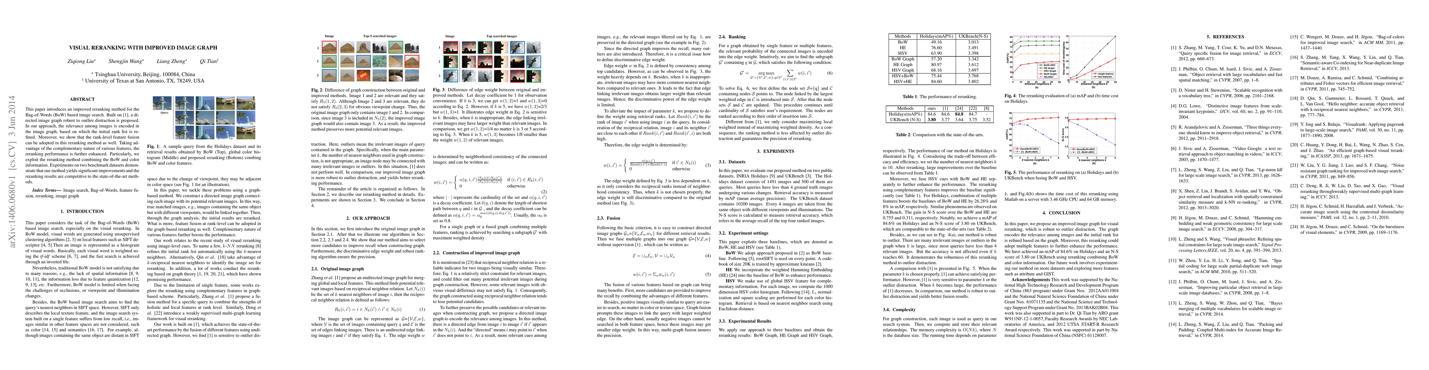 This paper proposes an enhanced reranking method for Bag-of-Words based image search using a directed image graph to improve relevance ranking. The method combines Bag-of-Words features with color information and rank-level feature fusion, achieving significant improvements over existing techniques on benchmark datasets.
