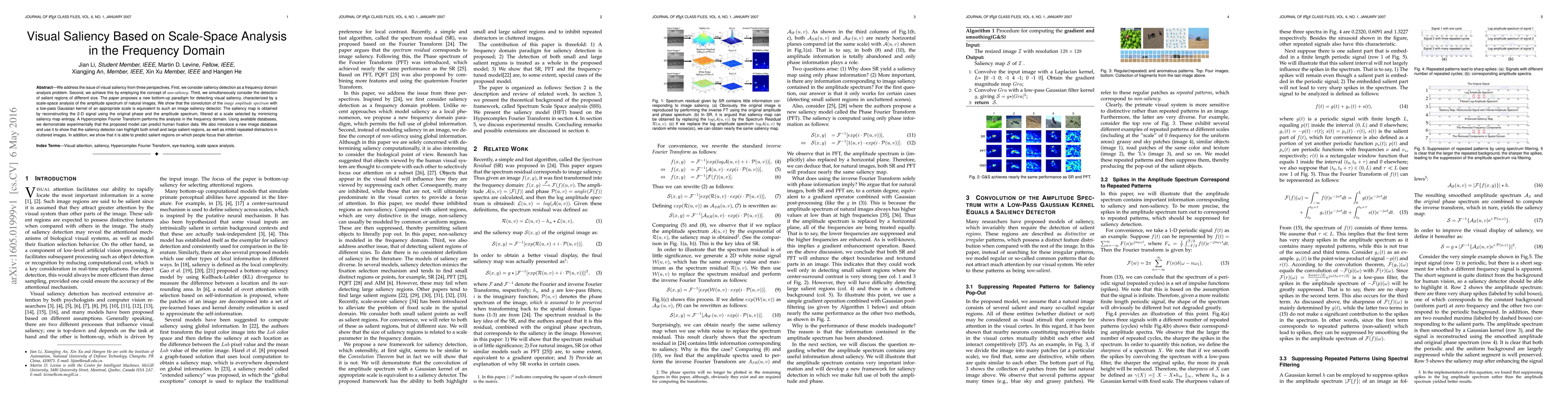 A new method for detecting visual saliency uses scale-space analysis in the frequency domain to highlight important regions in images that draw human attention, with promising results in predicting human fixation data and distinguishing between large and small salient areas.