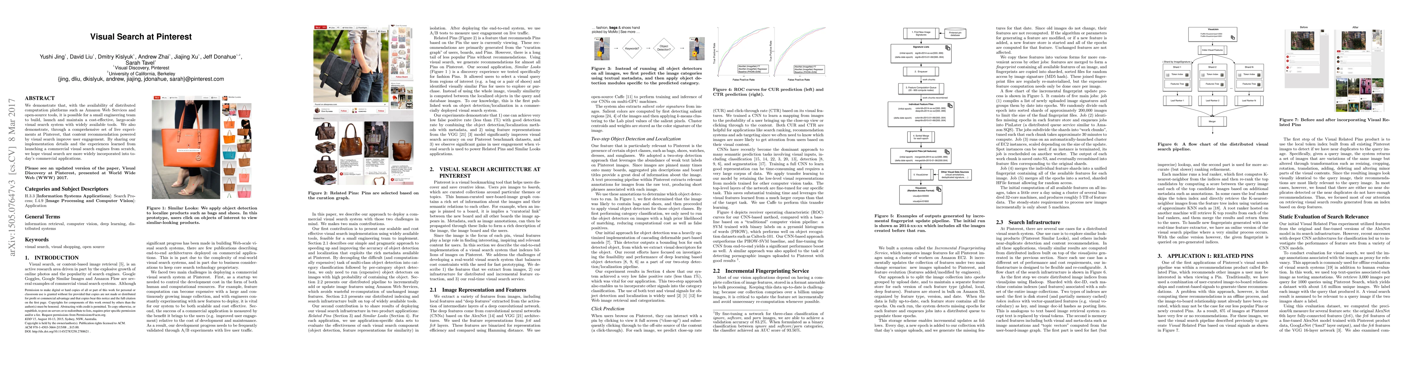 This paper details the development of a cost-effective large-scale visual search system using distributed computation platforms and open-source tools, and shows that visual search enhances user engagement on Pinterest. The authors share their implementation insights to encourage broader adoption of visual search in commercial applications.
