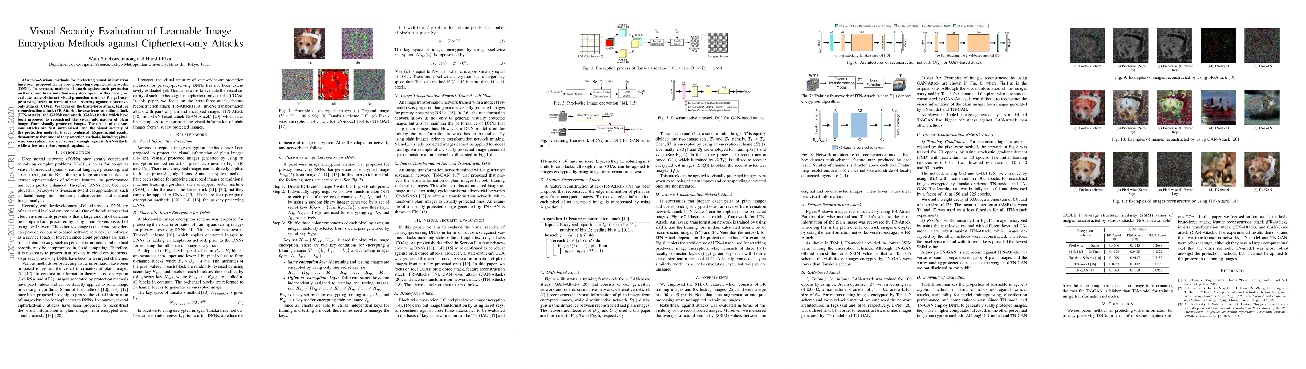 This paper evaluates the visual security of learnable image encryption methods against various ciphertext-only attacks, including brute-force, feature reconstruction, inverse transformation, and GAN-based attacks. Experimental results show that most protection methods lack robustness against GAN-based attacks, while a few are sufficiently resilient.