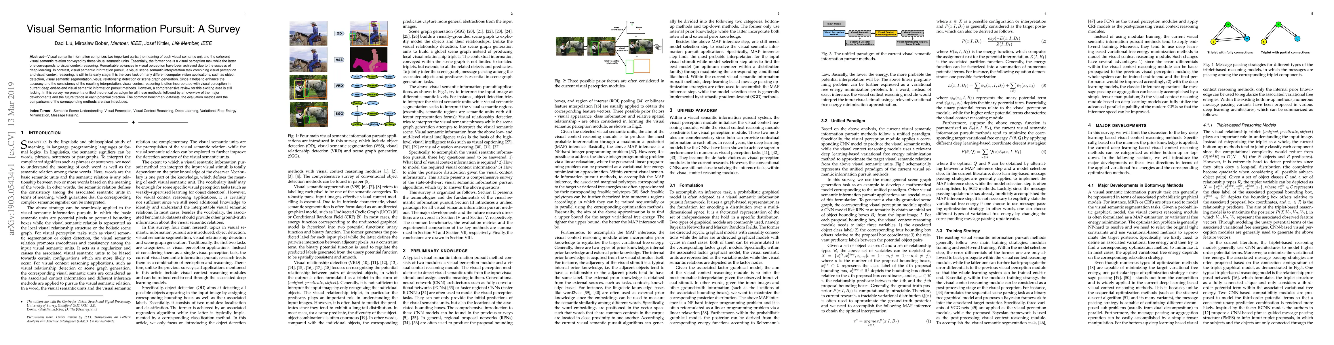 Visual semantic information comprises two important parts: the meaning of each visual semantic unit and the coherent visual semantic relation conveyed by these visual semantic units. Essentially, the former one is a visual perception task while the latter one corresponds to visual context reasoning. Remarkable advances in visual perception have been achieved due to the success of deep learning. In contrast, visual semantic information pursuit, a visual scene semantic interpretation task combining visual perception and visual context reasoning, is still in its early stage. It is the core task of many different computer vision applications, such as object detection, visual semantic segmentation, visual relationship detection or scene graph generation. Since it helps to enhance the accuracy and the consistency of the resulting interpretation, visual context reasoning is often incorporated with visual perception in current deep end-to-end visual semantic information pursuit methods. However, a comprehensive review for this exciting area is still lacking. In this survey, we present a unified theoretical paradigm for all these methods, followed by an overview of the major developments and the future trends in each potential direction. The common benchmark datasets, the evaluation metrics and the comparisons of the corresponding methods are also introduced.