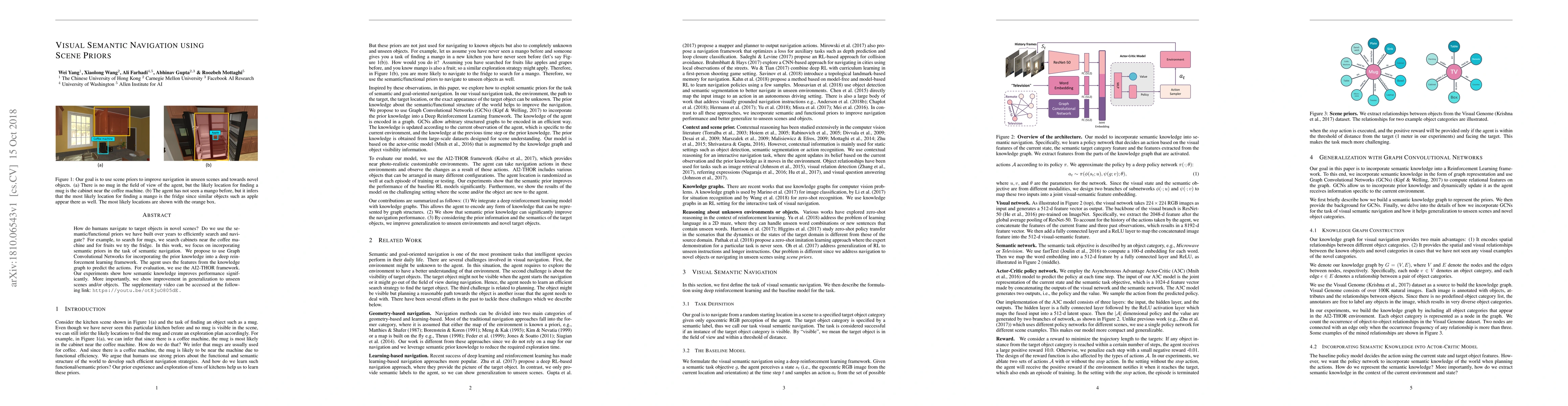 This paper explores how semantic priors can enhance visual semantic navigation in novel scenes using Graph Convolutional Networks within a deep reinforcement learning framework. The AI2-THOR framework demonstrates significant improvements in performance and generalization when incorporating semantic knowledge.