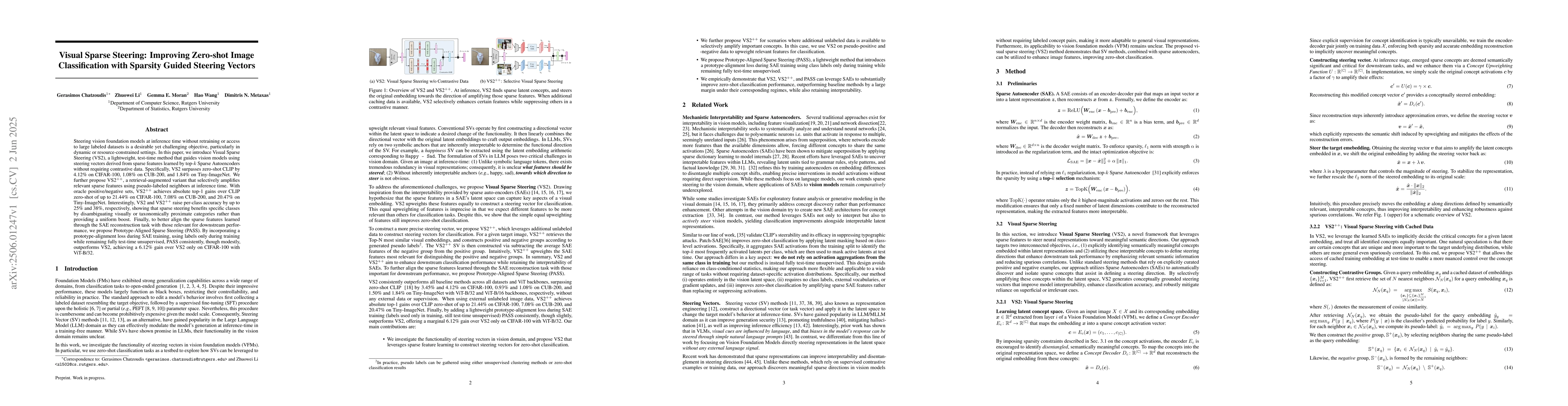 Researchers introduce Visual Sparse Steering (VS2), a lightweight method that uses sparse features learned from top-k autoencoders to guide vision models at inference time, improving zero-shot image classification by up to 21.44%.