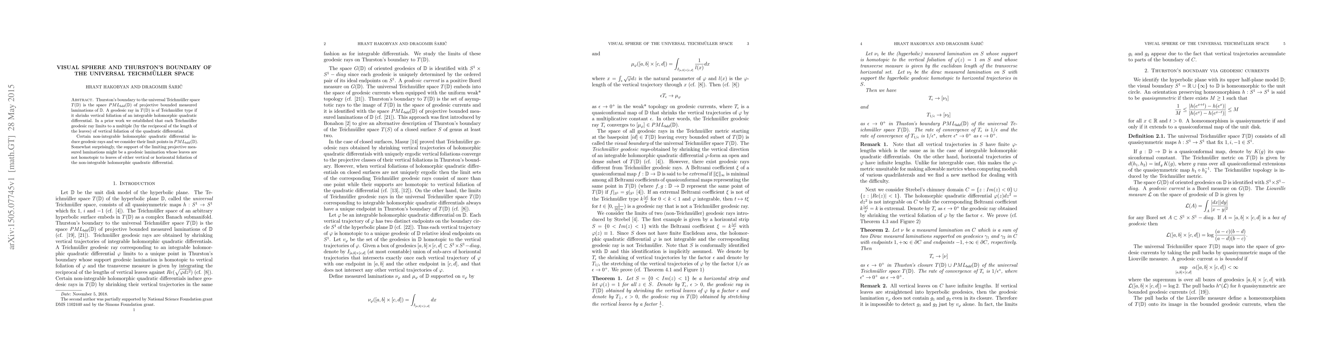This research examines Thurston's boundary of the universal Teichmüller space, focusing on geodesic rays that correspond to shrinking vertical foliations of integrable quadratic differentials. It explores the limit points of geodesic rays induced by non-integrable differentials, revealing that their limiting projective measured laminations can form geodesic laminations not related to the original differential's foliations.
