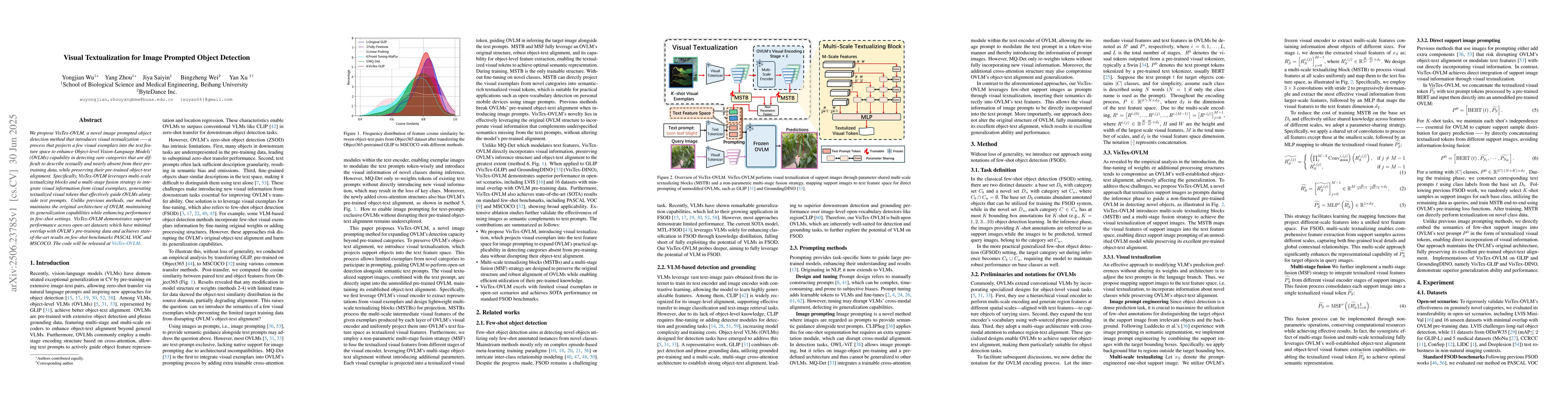 We propose VisTex-OVLM, a novel image prompted object detection method that introduces visual textualization -- a process that projects a few visual exemplars into the text feature space to enhance Object-level Vision-Language Models' (OVLMs) capability in detecting rare categories that are difficult to describe textually and nearly absent from their pre-training data, while preserving their pre-trained object-text alignment. Specifically, VisTex-OVLM leverages multi-scale textualizing blocks and a multi-stage fusion strategy to integrate visual information from visual exemplars, generating textualized visual tokens that effectively guide OVLMs alongside text prompts. Unlike previous methods, our method maintains the original architecture of OVLM, maintaining its generalization capabilities while enhancing performance in few-shot settings. VisTex-OVLM demonstrates superior performance across open-set datasets which have minimal overlap with OVLM's pre-training data and achieves state-of-the-art results on few-shot benchmarks PASCAL VOC and MSCOCO. The code will be released at https://github.com/WitGotFlg/VisTex-OVLM.