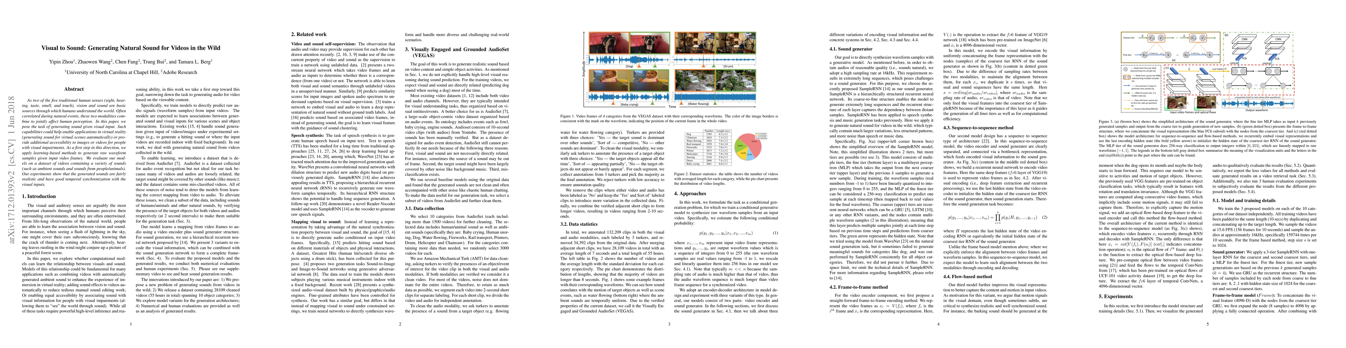 This paper explores generating natural sound from visual input to enhance virtual reality experiences and aid accessibility for people with visual impairments. The authors employ learning-based methods to produce raw waveform samples synchronized with video frames, demonstrating realistic and temporally accurate sound generation.