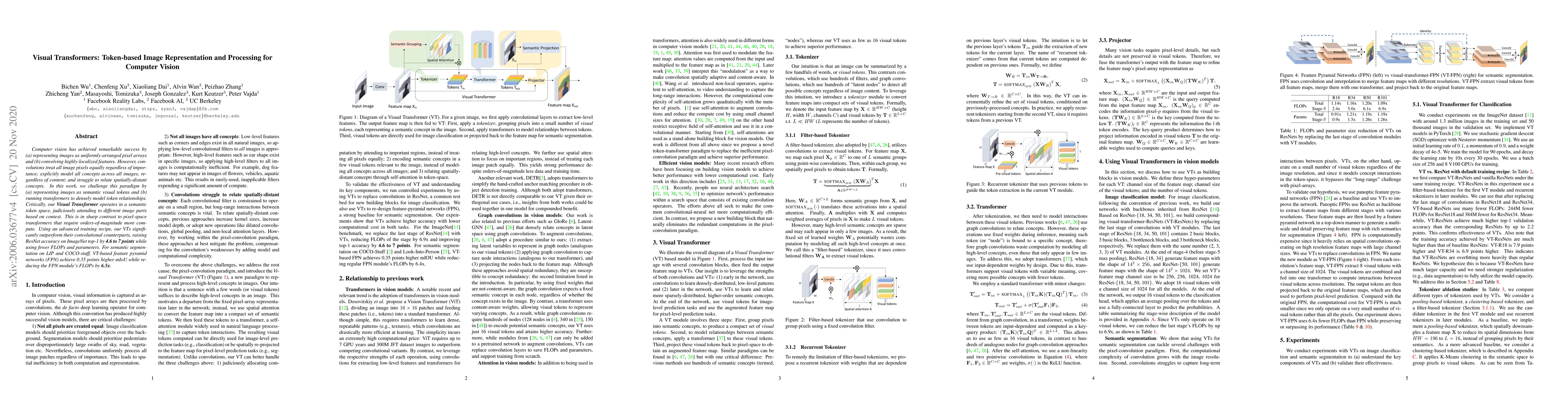 This research introduces Visual Transformers (VTs) that represent images as semantic tokens and use transformers to model token relationships, outperforming traditional convolutional methods. VTs achieve higher accuracy on ImageNet and semantic segmentation tasks with fewer computational resources.
