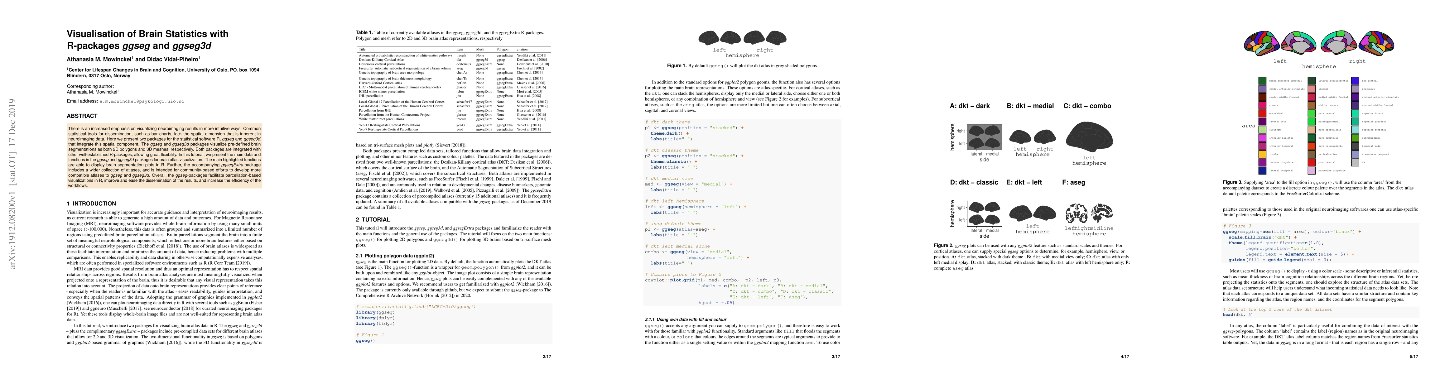 This paper introduces R-packages ggseg and ggseg3d for visualizing brain segmentations in 2D and 3D, respectively, enhancing the spatial representation of neuroimaging data. These packages integrate with other R tools, offering flexible and intuitive visualizations for brain atlases.