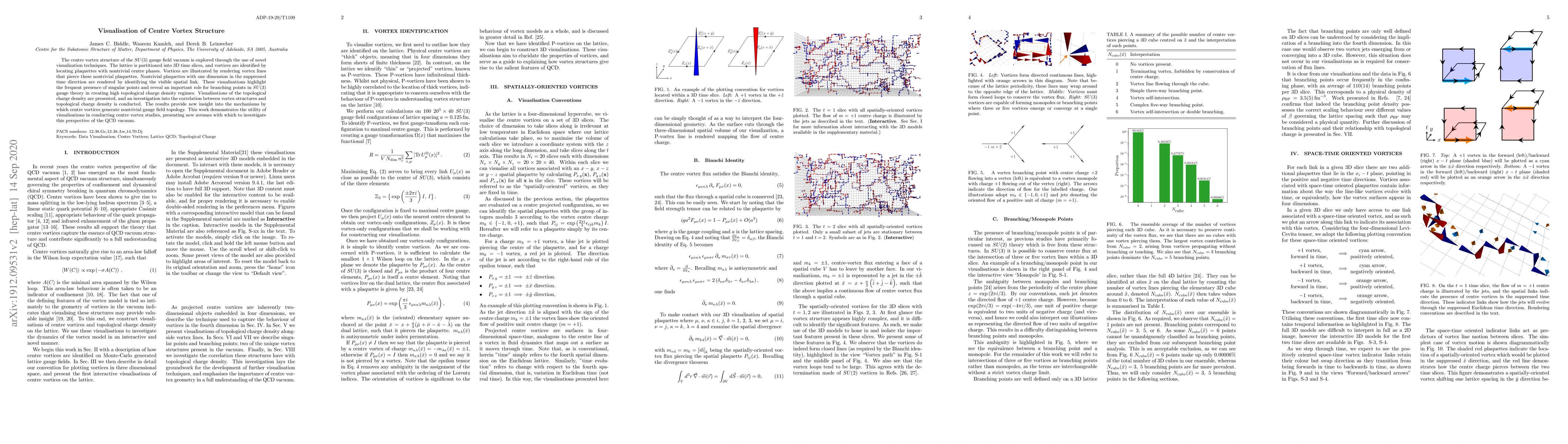 The centre vortex structure of the $SU(3)$ gauge field vacuum is explored through the use of novel visualisation techniques. The lattice is partitioned into 3D time slices, and vortices are identified by locating plaquettes with nontrivial centre phases. Vortices are illustrated by rendering vortex lines that pierce these nontrivial plaquettes. Nontrivial plaquettes with one dimension in the suppressed time direction are rendered by identifying the visible spatial link. These visualisations highlight the frequent presence of singular points and reveal an important role for branching points in $SU(3)$ gauge theory in creating high topological charge density regimes. Visualisations of the topological charge density are presented, and an investigation into the correlation between vortex structures and topological charge density is conducted. The results provide new insight into the mechanisms by which centre vortices generate nontrivial gauge field topology. This work demonstrates the utility of visualisations in conducting centre vortex studies, presenting new avenues with which to investigate this perspective of the QCD vacuum.
