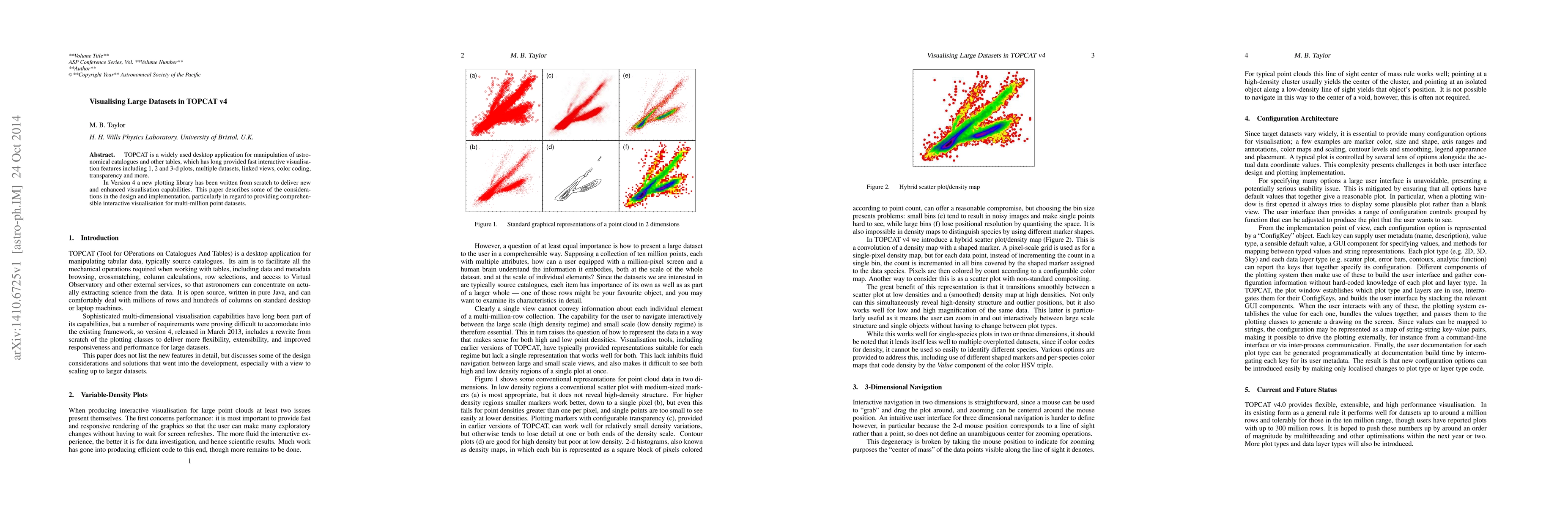 This paper discusses the new plotting library in TOPCAT v4, which enhances interactive visualisation capabilities for astronomical catalogues, focusing on comprehensible representations for multi-million point datasets. The redesign aims to improve the handling and display of large datasets through advanced features like linked views and color coding.