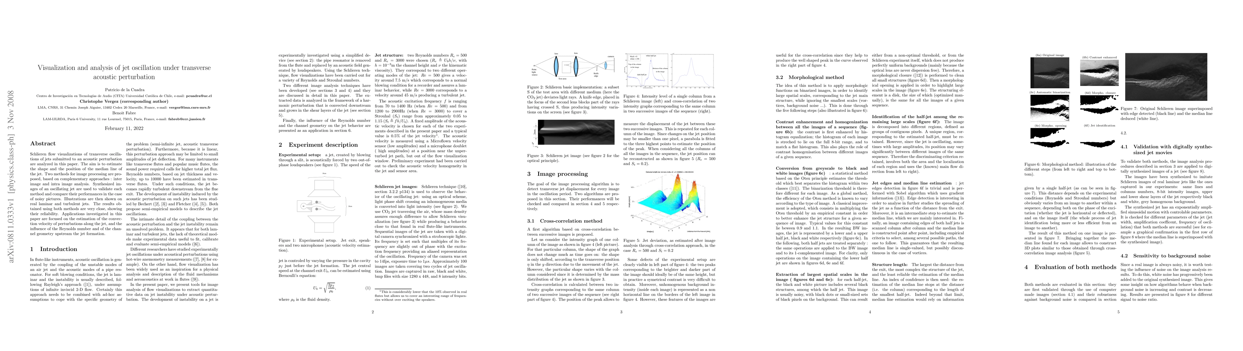 Researchers studied jet oscillation under acoustic perturbation using flow visualization, proposing two image processing methods that accurately estimate the shape and position of a jet's median line.