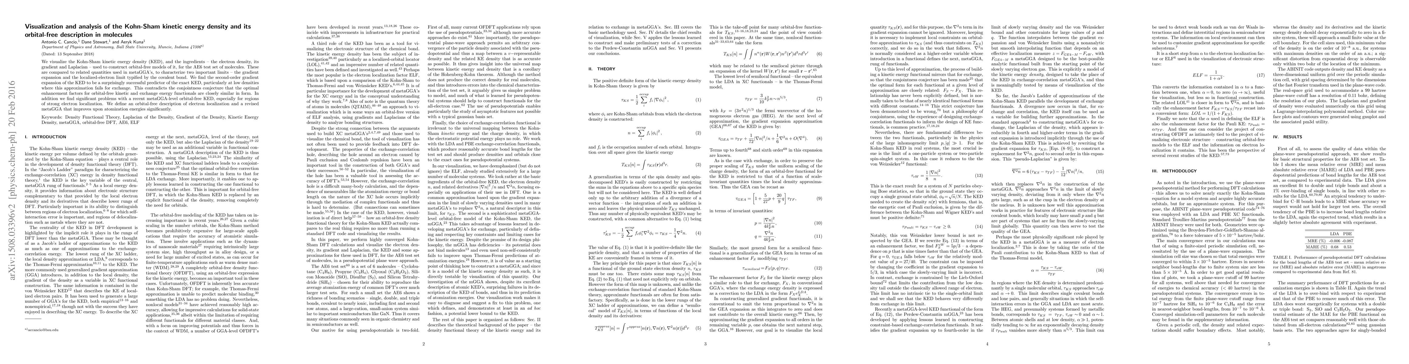 We visualize the Kohn-Sham kinetic energy density (KED), and the ingredients -- the electron density, its gradient and Laplacian -- used to construct orbital-free models of it, for the AE6 test set of molecules. These are compared to related quantities used in metaGGA's, to characterize two important limits -- the gradient expansion and the localized-electron limit typified by the covalent bond. We find the second-order gradient expansion of the KED to be a surprisingly successful predictor of the exact KED, particularly at low densities where this approximation fails for exchange. This contradicts the conjointness conjecture that the optimal enhancement factors for orbital-free kinetic and exchange energy functionals are identical. In addition we find significant problems with a recent metaGGA-level orbital-free KED, especially for regions of strong electron localization. We define an orbital-free description of electron localization and a revised metaGGA that improves upon atomization energies significantly.