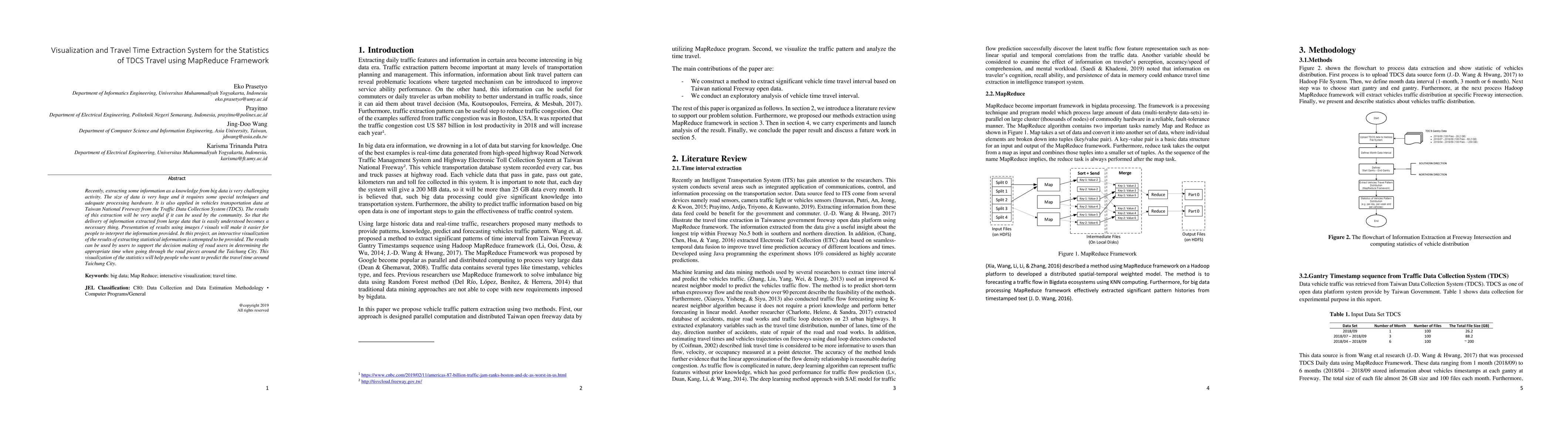 Recently, extracting some information as a knowledge from big data is very challenging activity. The size of data is very huge and it requires some special techniques and adequate processing hardware. It is also applied in vehicles transportation data at Taiwan National Freeway from the Traffic Data Collection System (TDCS). The results of this extraction will be very useful if it can be used by the community. So that the delivery of information extracted from large data that is easily understood becomes a necessary thing. Presentation of results using images / visuals will make it easier for people to interpret the information provided. In this project, an interactive visualization of the results of extracting statistical information is attempted to be provided. The results can be used by users to support the decision making of road users in determining the appropriate time when going through the road pieces around the Taichung City. This visualization of the statistics will help people who want to predict the travel time around Taichung City.