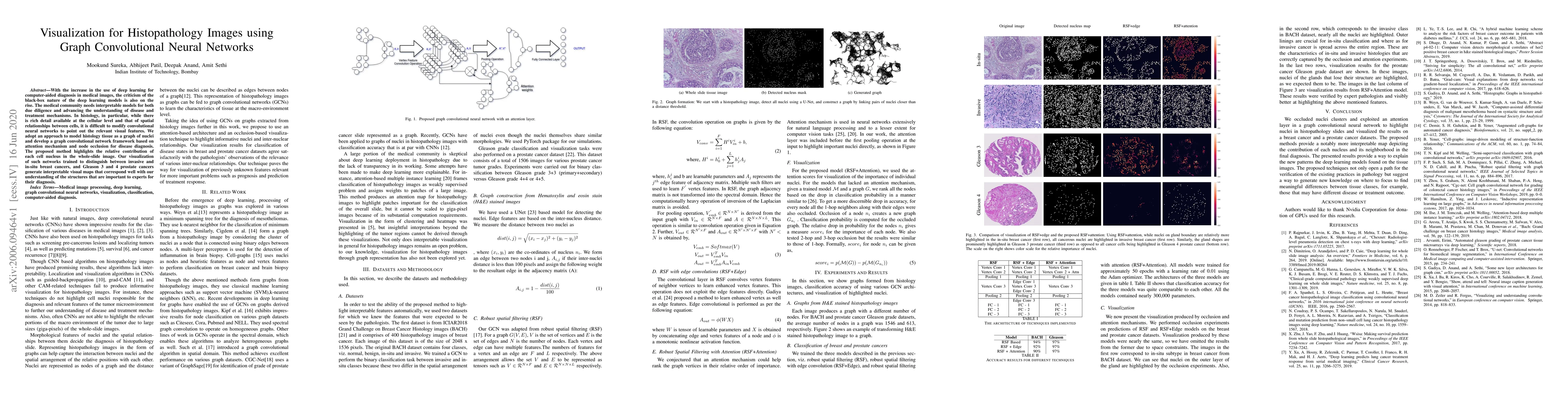With the increase in the use of deep learning for computer-aided diagnosis in medical images, the criticism of the black-box nature of the deep learning models is also on the rise. The medical community needs interpretable models for both due diligence and advancing the understanding of disease and treatment mechanisms. In histology, in particular, while there is rich detail available at the cellular level and that of spatial relationships between cells, it is difficult to modify convolutional neural networks to point out the relevant visual features. We adopt an approach to model histology tissue as a graph of nuclei and develop a graph convolutional network framework based on attention mechanism and node occlusion for disease diagnosis. The proposed method highlights the relative contribution of each cell nucleus in the whole-slide image. Our visualization of such networks trained to distinguish between invasive and in-situ breast cancers, and Gleason 3 and 4 prostate cancers generate interpretable visual maps that correspond well with our understanding of the structures that are important to experts for their diagnosis.