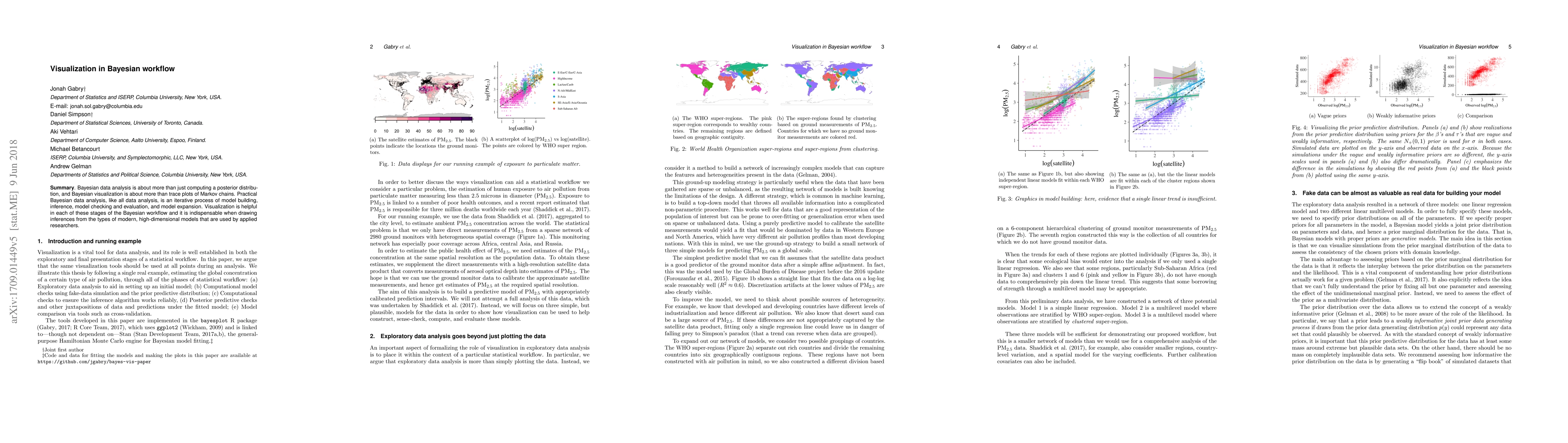This paper discusses the importance of visualization beyond trace plots in Bayesian workflow, emphasizing its role in iterative model building, inference, checking, evaluation, and expansion, especially for high-dimensional models. Visualization aids in drawing accurate inferences in modern Bayesian data analysis.