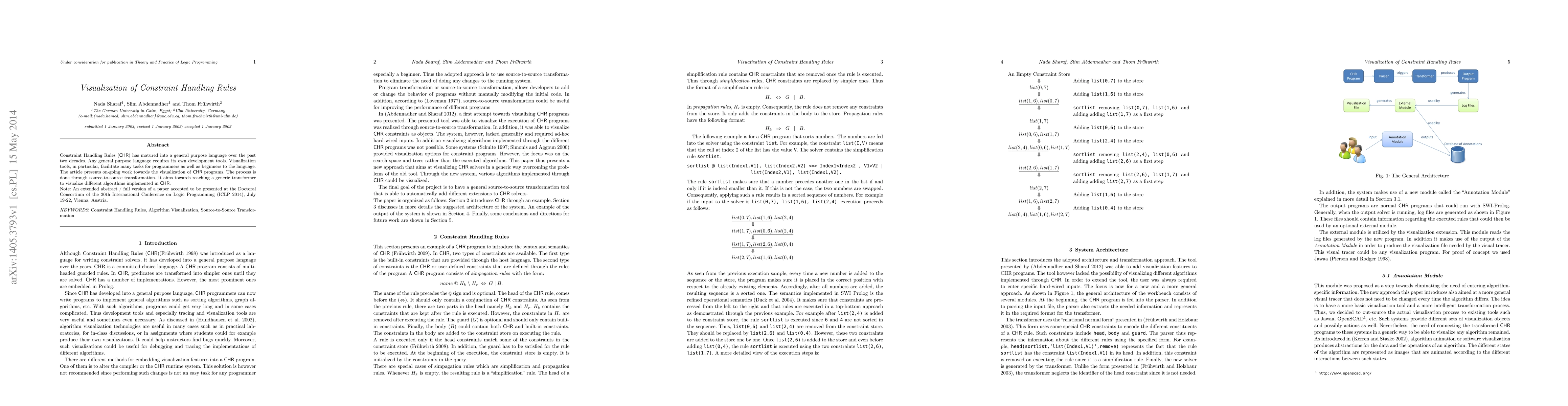 Constraint Handling Rules (CHR) has matured into a general purpose language over the past two decades. Any general purpose language requires its own development tools. Visualization tools, in particular, facilitate many tasks for programmers as well as beginners to the language. The article presents on-going work towards the visualization of CHR programs. The process is done through source-to-source transformation. It aims towards reaching a generic transformer to visualize different algorithms implemented in CHR. Note: An extended abstract / full version of a paper accepted to be presented at the Doctoral Consortium of the 30th International Conference on Logic Programming (ICLP 2014), July 19-22, Vienna, Austria.