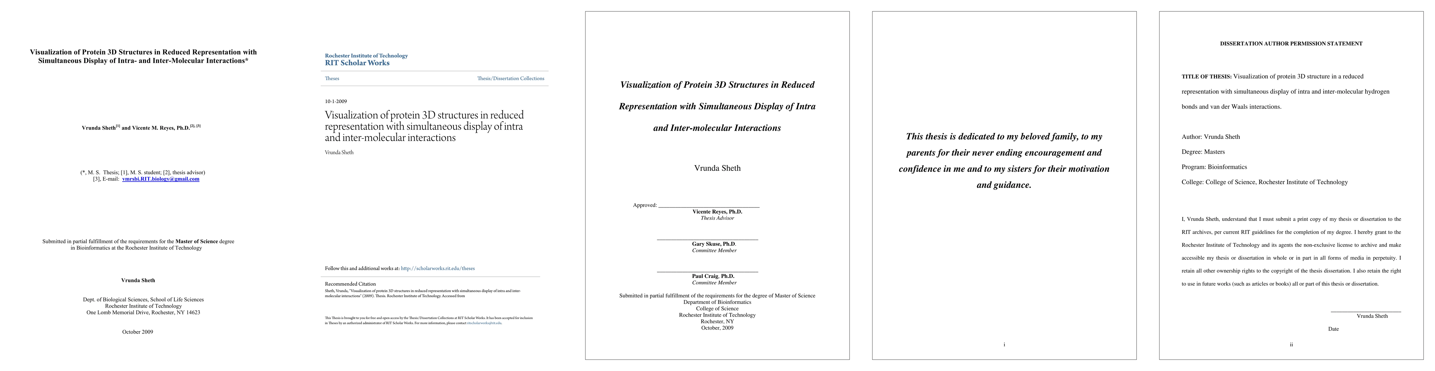 Protein structure representation is an important tool in structural biology. There exists different methods of representing the protein 3D structures and different biologists favor different methods based on the information they require. Currently there is no available method of protein 3D structure representation which captures enough chemical information from the protein sequence and clearly shows the intra-molecular and the inter-molecular H-bonds and VDW interactions at the same time. This project aims to reduce the 3D structure of a protein and display the reduced representation along with intermolecular and the intra- molecular H-bonds and van der Waals interactions. A reduced protein representation has a significantly lower atomicity (i.e., number of atom coordinates) than one which is in all- atom representation. In this work, we transform the protein structure from all-atom representation" (AAR) to double-centroid reduced representation (DCRR), which contains amino acid backbone (N, CA, C', O) and side chain (CB and beyond) centroid coordinates instead of atomic coordinates. Another aim of this project is to develop a visualization interface for the reduced representation. This interface is implemented in MATLAB and displays the protein in DCRR along with its inter-molecular, as well as intra-molecular, interaction. Visually, DCRR is easier to comprehend than AAR. We also developed a Web Server called the Protein DCRR Web Server wherein users can enter the PDB id or upload a modeled protein and get the DCRR of that protein. The back end to the Web Server is a database which has the reduced representation for all the x-ray crystallographic structure in the PDB.