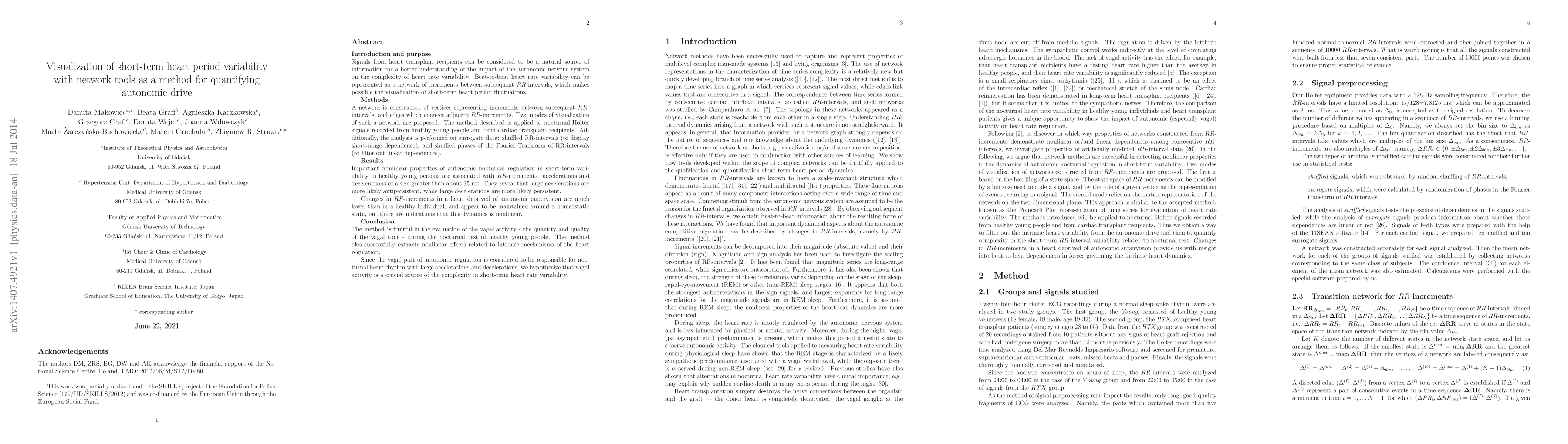 This paper proposes a network visualization method to quantify autonomic drive by analyzing short-term heart period variability in heart transplant recipients. The network represents increments between $RR$-intervals, revealing nonlinear properties of autonomic regulation, with large accelerations and decelerations showing antipersistent and persistent behaviors, respectively.