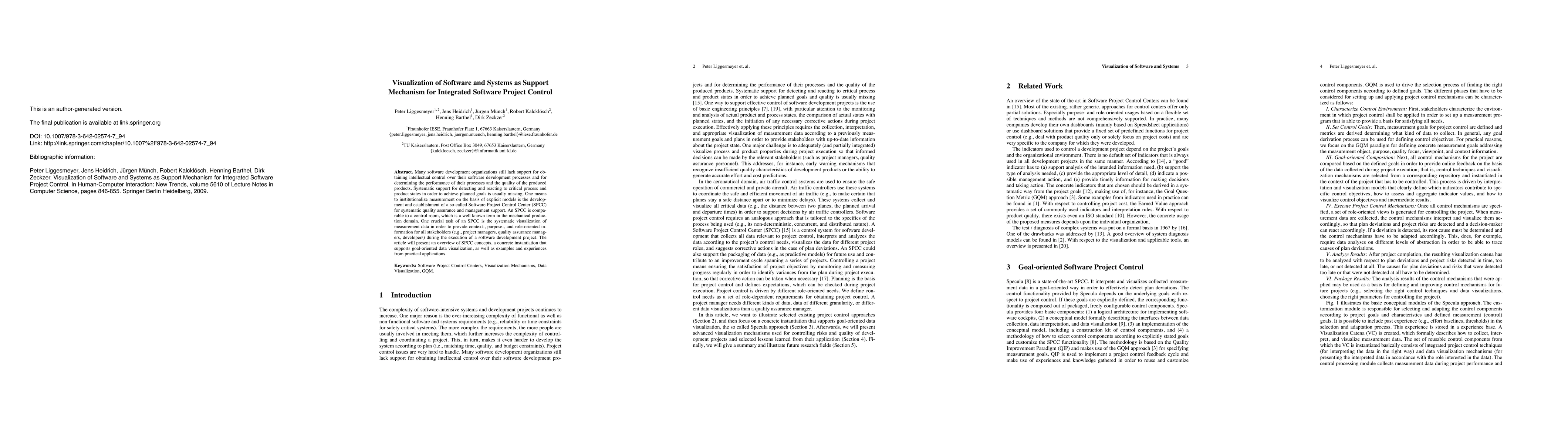 This paper discusses the establishment of a Software Project Control Center (SPCC) to enhance integrated software project control through systematic visualization of measurement data, providing context-specific insights for stakeholders to improve process and product quality. Practical examples and experiences from implementing SPCCs are also presented.