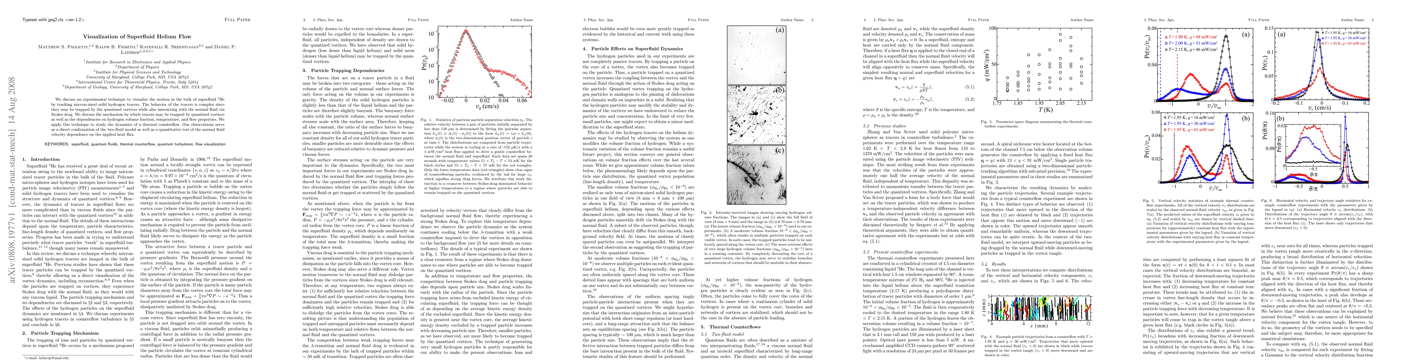 Researchers used micron-sized solid hydrogen tracers to visualize superfluid helium flow, confirming the two-fluid model and quantifying normal fluid velocity dependence on heat flux. The study provides insights into complex interactions between tracers and vortices in thermal counterflow dynamics.