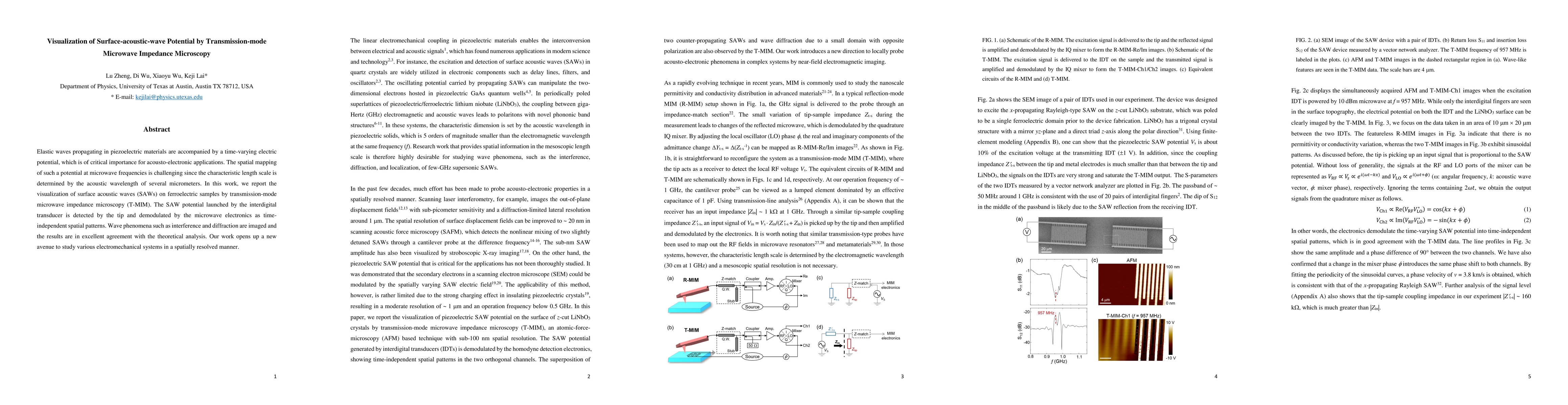 This paper presents the visualization of surface acoustic waves (SAWs) on ferroelectric samples using transmission-mode microwave impedance microscopy (T-MIM), demonstrating wave phenomena such as interference and diffraction, and aligning well with theoretical predictions. This technique provides a new method for spatially resolved study of electromechanical systems.