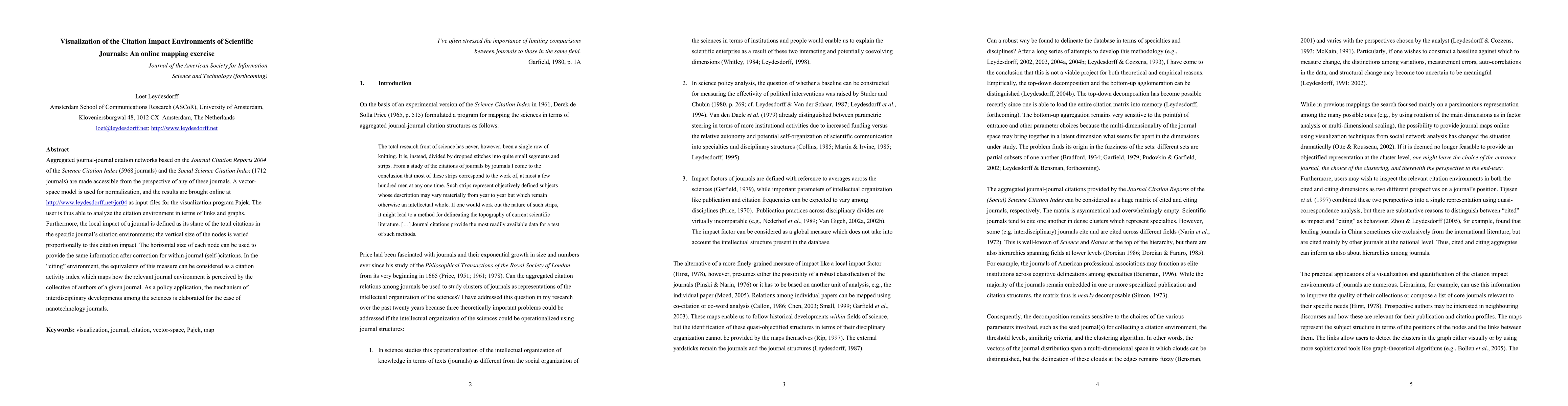 This paper presents an online tool visualizing aggregated citation networks from the Science and Social Science Citation Indexes, allowing users to explore the citation impact environments of scientific journals. The tool maps the local impact and citation activity index, demonstrating interdisciplinary developments, particularly in nanotechnology journals.