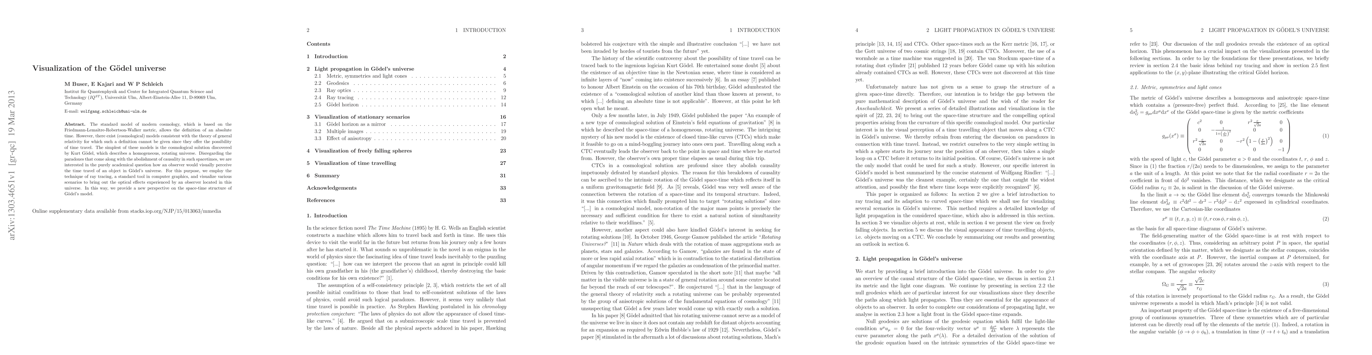 The standard model of modern cosmology, which is based on the Friedmann-Lema\^itre-Robertson-Walker metric, allows the definition of an absolute time. However, there exist (cosmological) models consistent with the theory of general relativity for which such a definition cannot be given since they offer the possibility of time travel. The simplest of these models is the cosmological solution discovered by Kurt G\"odel, which describes a homogeneous, rotating universe. Disregarding the paradoxes that come along with the abolishment of causality in such spacetimes, we are interested in the purely academical question how an observer would visually perceive the time travel of an object in G\"odel's universe. For this purpose, we employ the technique of ray tracing, a standard tool in computer graphics, and visualize various scenarios to bring out the optical effects experienced by an observer located in this universe. In this way, we provide a new perspective on the space-time structure of G\"odel's model.