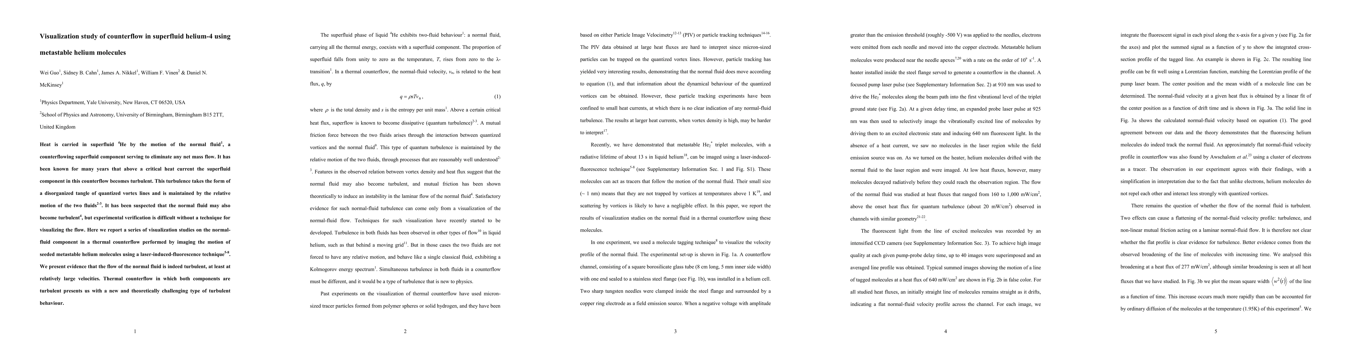 This study visualizes the turbulent behavior of the normal fluid component in superfluid helium-4 using metastable helium molecules and laser-induced fluorescence, revealing that the normal fluid exhibits turbulence at high velocities, presenting a new form of turbulent behavior in thermal counterflow.