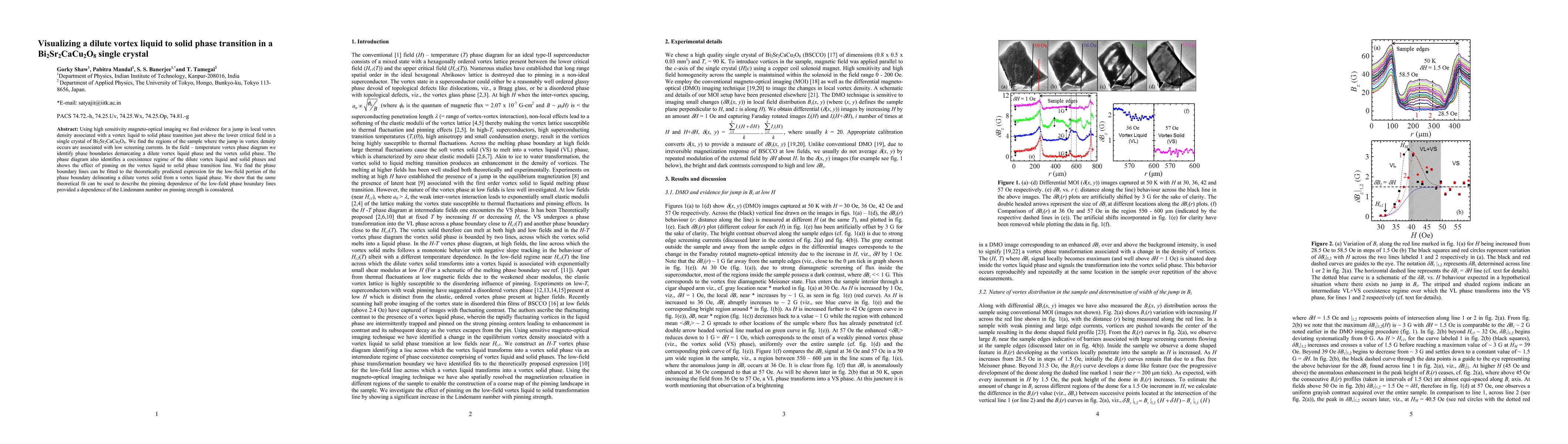 This study uses high-sensitivity magneto-optical imaging to observe a vortex liquid to solid phase transition in a Bi2Sr2CaCu2O8 crystal, identifying regions with low screening currents where the transition occurs. The research delineates phase boundaries in the field-temperature diagram and confirms theoretical predictions for the phase boundary and pinning effects.