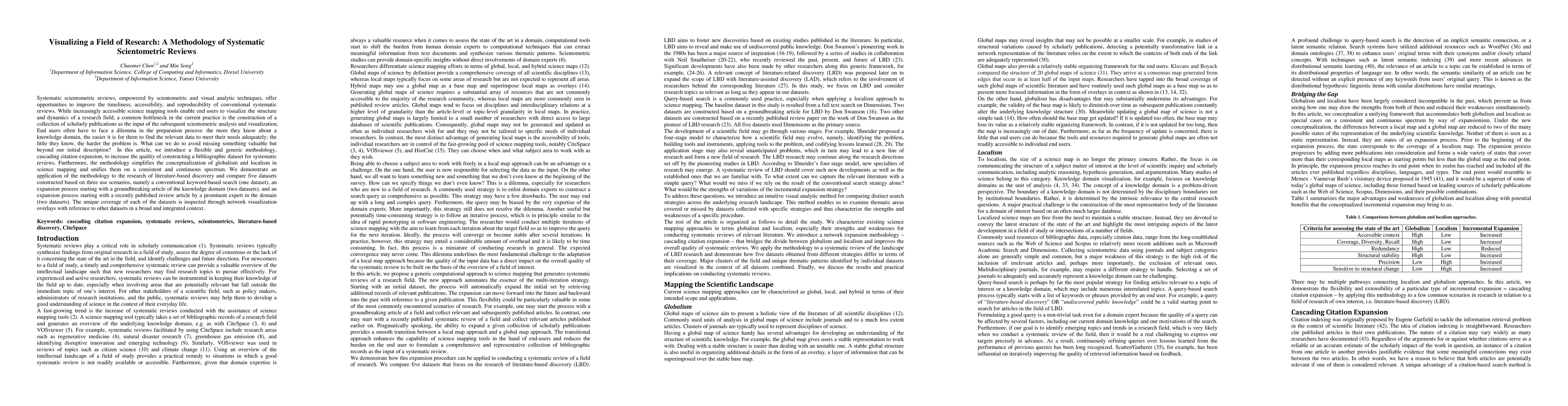 Systematic scientometric reviews, empowered by scientometric and visual analytic techniques, offer opportunities to improve the timeliness, accessibility, and reproducibility of conventional systematic reviews. While increasingly accessible science mapping tools enable end users to visualize the structure and dynamics of a research field, a common bottleneck in the current practice is the construction of a collection of scholarly publications as the input of the subsequent scientometric analysis and visualization. End users often have to face a dilemma in the preparation process: the more they know about a knowledge domain, the easier it is for them to find the relevant data to meet their needs adequately; the little they know, the harder the problem is. What can we do to avoid missing something valuable but beyond our initial description? In this article, we introduce a flexible and generic methodology, cascading citation expansion, to increase the quality of constructing a bibliographic dataset for systematic reviews. Furthermore, the methodology simplifies the conceptualization of globalism and localism in science mapping and unifies them on a consistent and continuous spectrum. We demonstrate an application of the methodology to the research of literature-based discovery and compare five datasets constructed based on three use scenarios, namely a conventional keyword-based search (one dataset), an expansion process starting with a groundbreaking article of the knowledge domain (two datasets), and an expansion process starting with a recently published review article by a prominent expert in the domain (two datasets). The unique coverage of each of the datasets is inspected through network visualization overlays with reference to other datasets in a broad and integrated context.