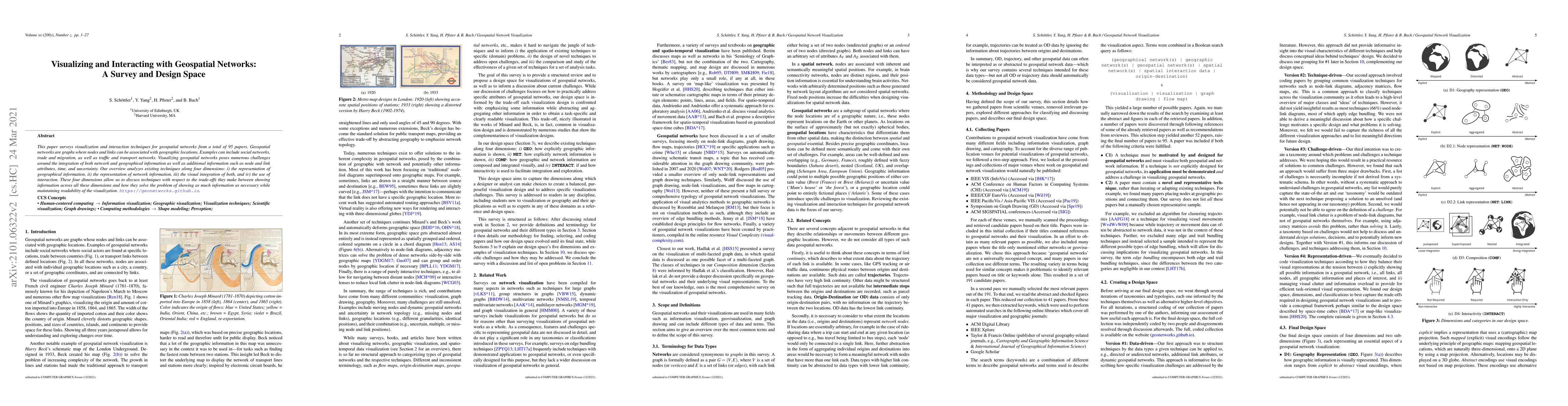 This paper surveys visualization and interaction techniques for geospatial networks from a total of 95 papers. Geospatial networks are graphs where nodes and links can be associated with geographic locations. Examples can include social networks, trade and migration, as well as traffic and transport networks. Visualizing geospatial networks poses numerous challenges around the integration of both network and geographical information as well as additional information such as node and link attributes, time, and uncertainty. Our overview analyzes existing techniques along four dimensions: i) the representation of geographical information, ii) the representation of network information, iii) the visual integration of both, and iv) the use of interaction. These four dimensions allow us to discuss techniques with respect to the trade-offs they make between showing information across all these dimensions and how they solve the problem of showing as much information as necessary while maintaining readability of the visualization. https://geonetworks.github.io.