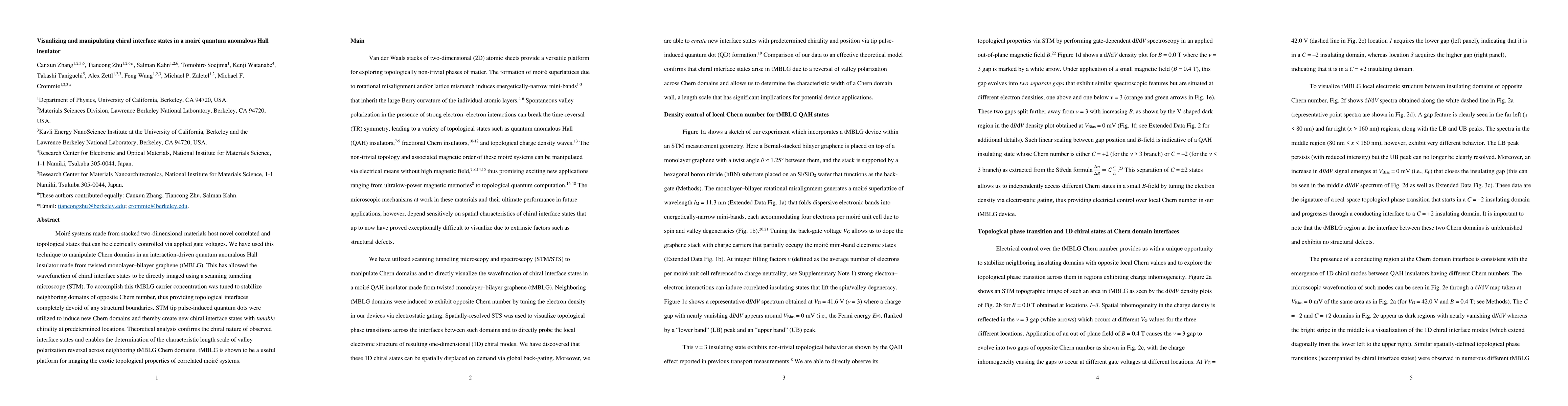 This paper explores the manipulation and visualization of chiral interface states in a moiré quantum anomalous Hall insulator using twisted monolayer-bilayer graphene (tMBLG) and scanning tunneling microscopy. The study reveals the ability to electrically control Chern domains and create new chiral interface states with tunable properties, providing insights into the topological nature of these materials.