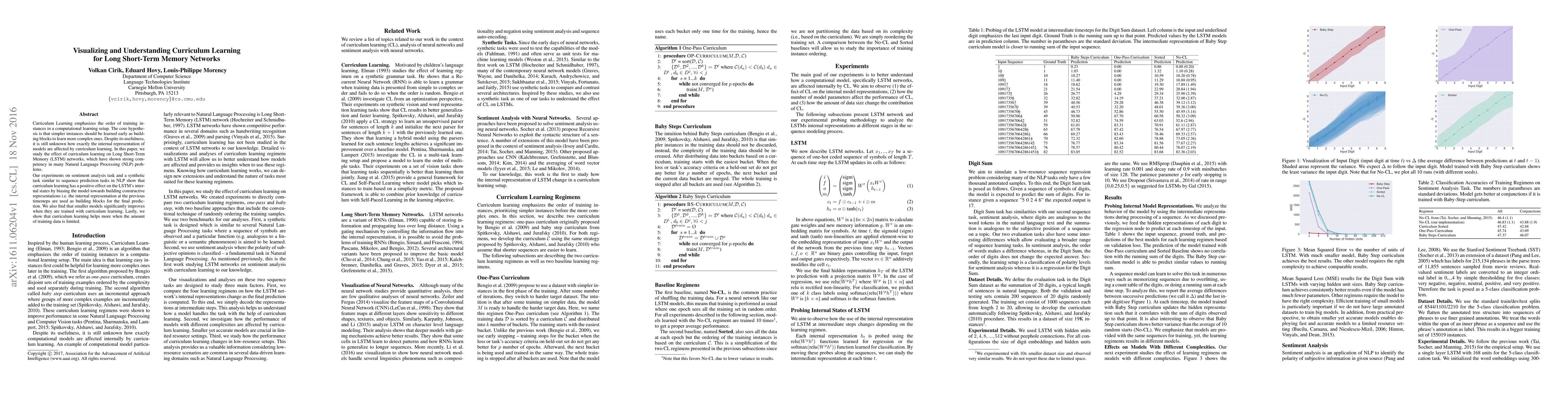 This paper investigates the impact of curriculum learning on Long Short-Term Memory (LSTM) networks, demonstrating that it can enhance the internal representations by using simpler instances as foundational blocks for more complex tasks. It finds that curriculum learning, especially in data-limited scenarios, significantly benefits LSTM performance in NLP tasks.