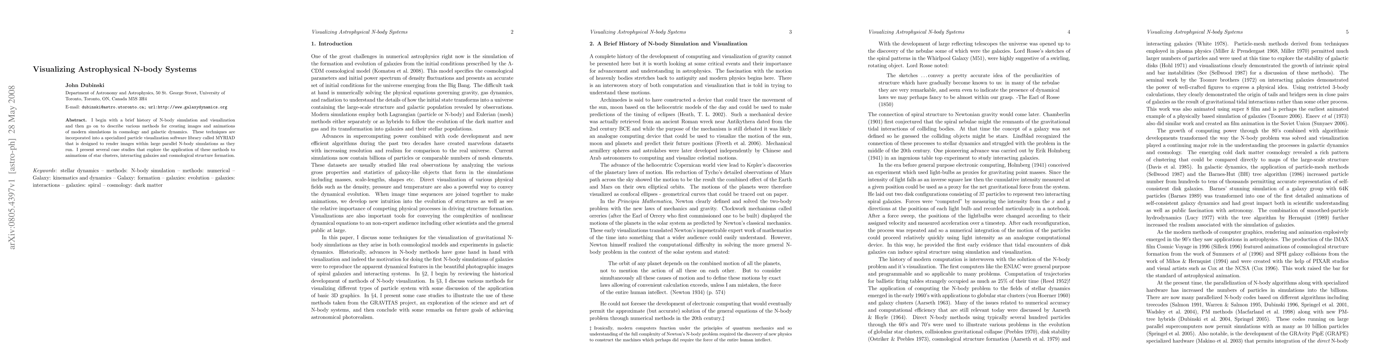 This paper discusses the evolution of N-body simulation visualization, introducing a specialized software library called MYRIAD. It details methods for creating images and animations of complex astrophysical systems like star clusters and interacting galaxies, demonstrated through various case studies.