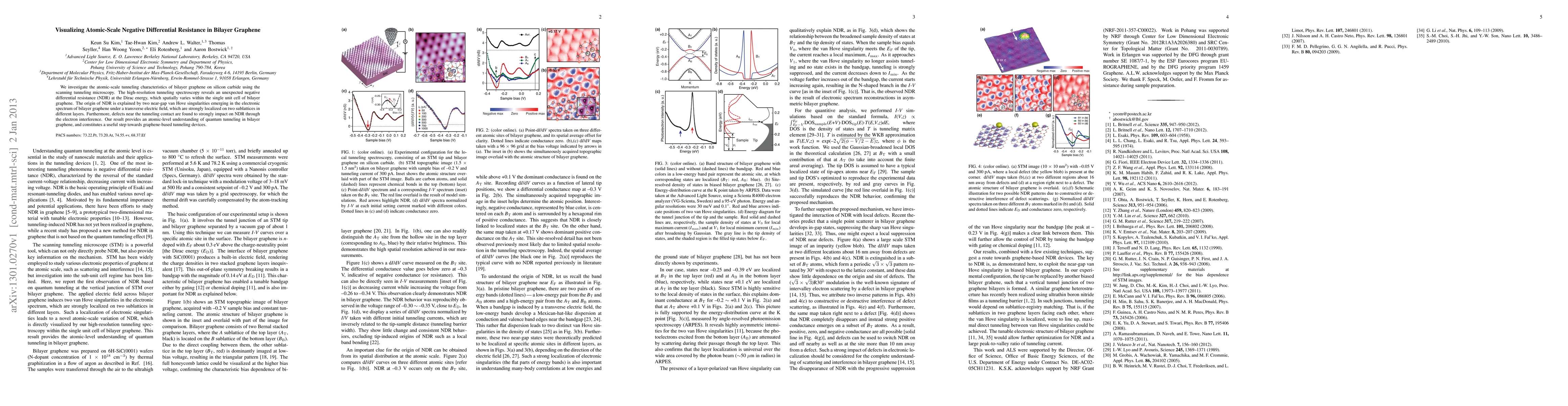 This paper uses scanning tunneling microscopy to reveal atomic-scale tunneling characteristics in bilayer graphene, identifying unexpected negative differential resistance (NDR) at the Dirac energy due to localized van Hove singularities. Defects near the tunneling contact are shown to influence NDR via electron interference, offering insights into quantum tunneling for graphene-based devices.