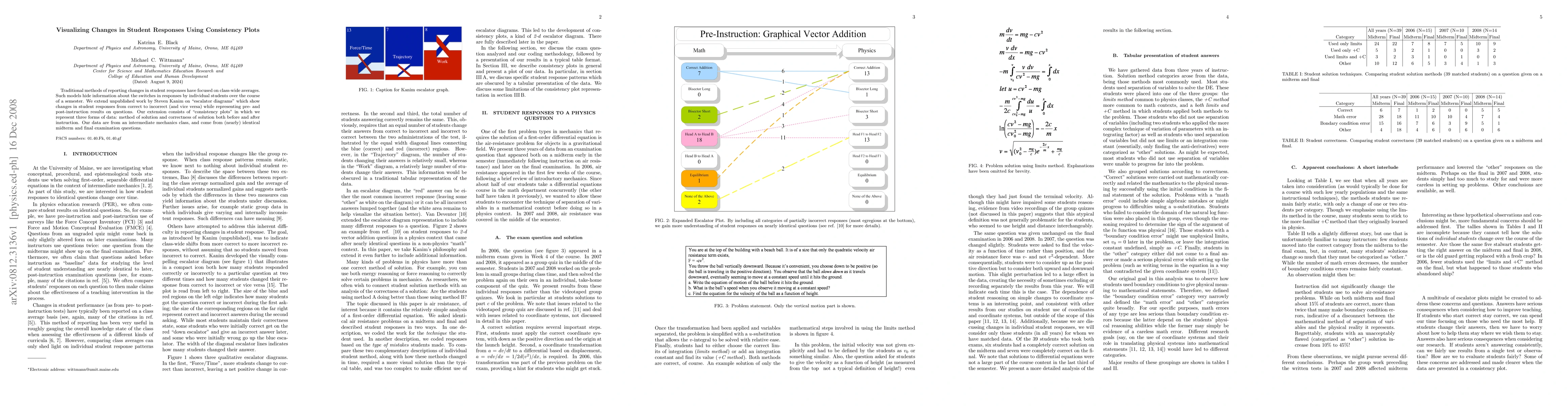 Traditional methods of reporting changes in student responses have focused on class-wide averages. Such models hide information about the switches in responses by individual students over the course of a semester. We extend unpublished work by Steven Kanim on "escalator diagrams" which show changes in student responses from correct to incorrect (and vice versa) while representing pre- and post-instruction results on questions. Our extension consists of "consistency plots" in which we represent three forms of data: method of solution and correctness of solution both before and after instruction. Our data are from an intermediate mechanics class, and come from (nearly) identical midterm and final examination questions.