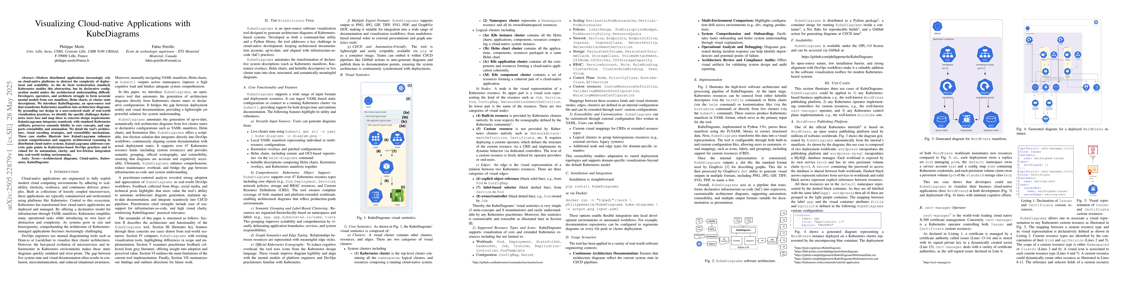 KubeDiagrams, an open-source tool that generates architecture diagrams from Kubernetes manifests, is the main technical contribution.