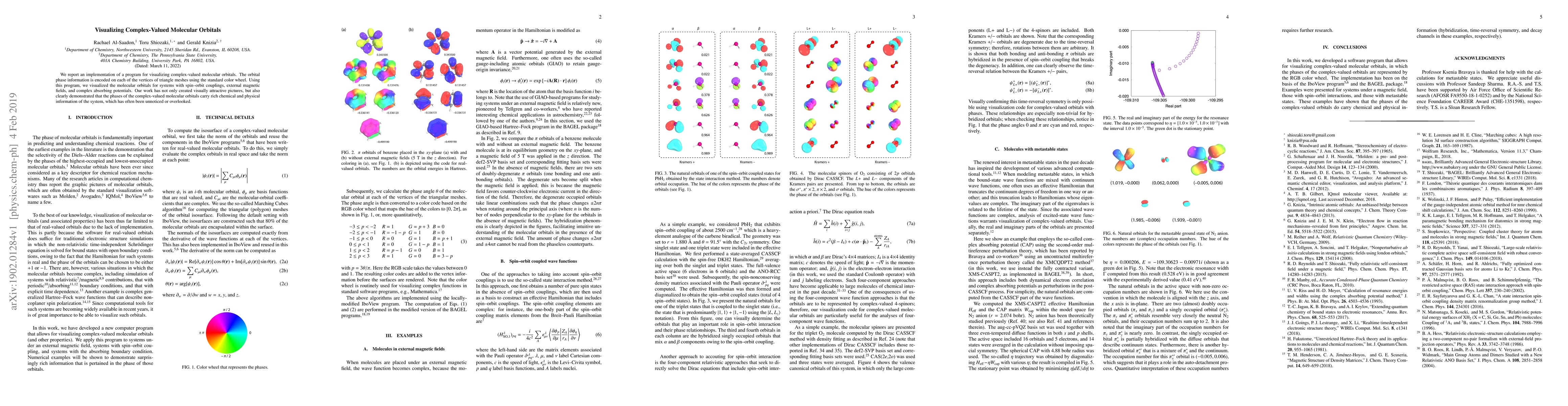 This paper presents a program for visualizing complex-valued molecular orbitals, encoding orbital phase information using a color wheel on triangle mesh vertices. The visualizations reveal significant chemical and physical insights from the phases of these orbitals, particularly in systems with spin-orbit couplings, magnetic fields, and complex absorbing potentials.