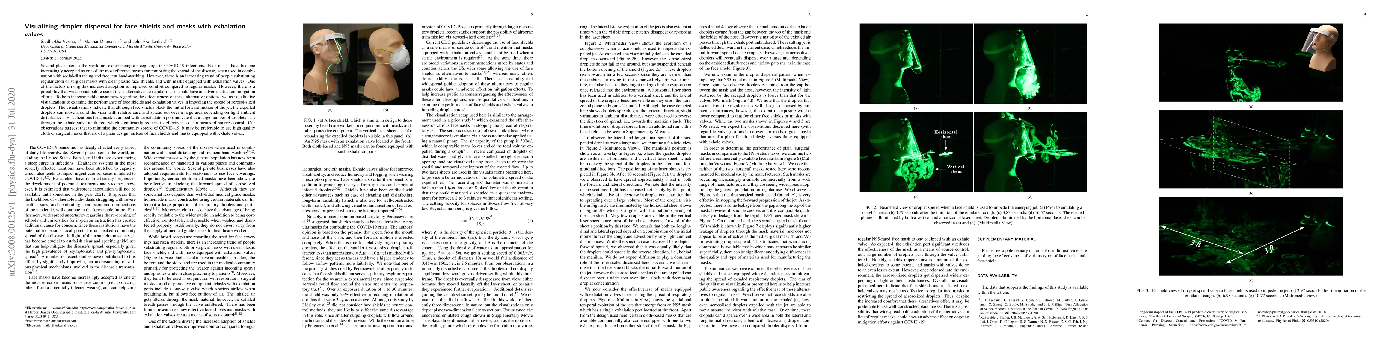 This study uses qualitative visualizations to assess the effectiveness of face shields and masks with exhalation valves in preventing droplet dispersal. Results show that while face shields block initial droplet spread, they allow droplets to bypass and spread widely. Masks with exhalation valves permit many droplets to escape unfiltered, reducing their efficacy. The study concludes that plain cloth or surgical masks are more effective for mitigating COVID-19 spread.