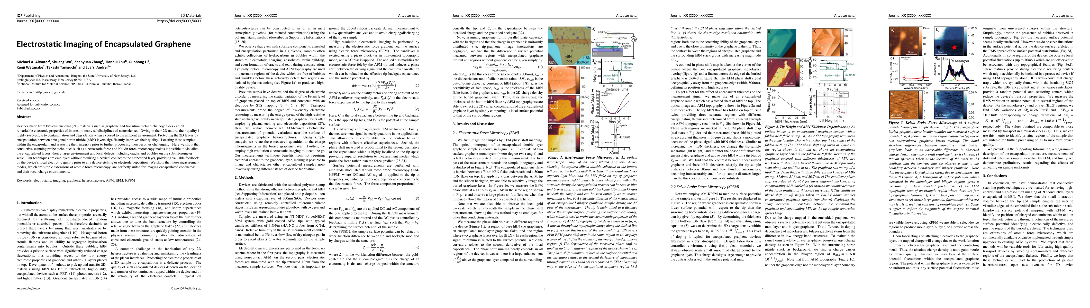 This paper presents a method combining Kelvin force probe microscopy (KPFM) and electrostatic force microscopy (EFM) to visualize encapsulated graphene with sub-micrometer resolution, identifying defects and charge environments, crucial for high-quality device fabrication. The technique effectively detects structural defects and contaminants within the graphene flakes.
