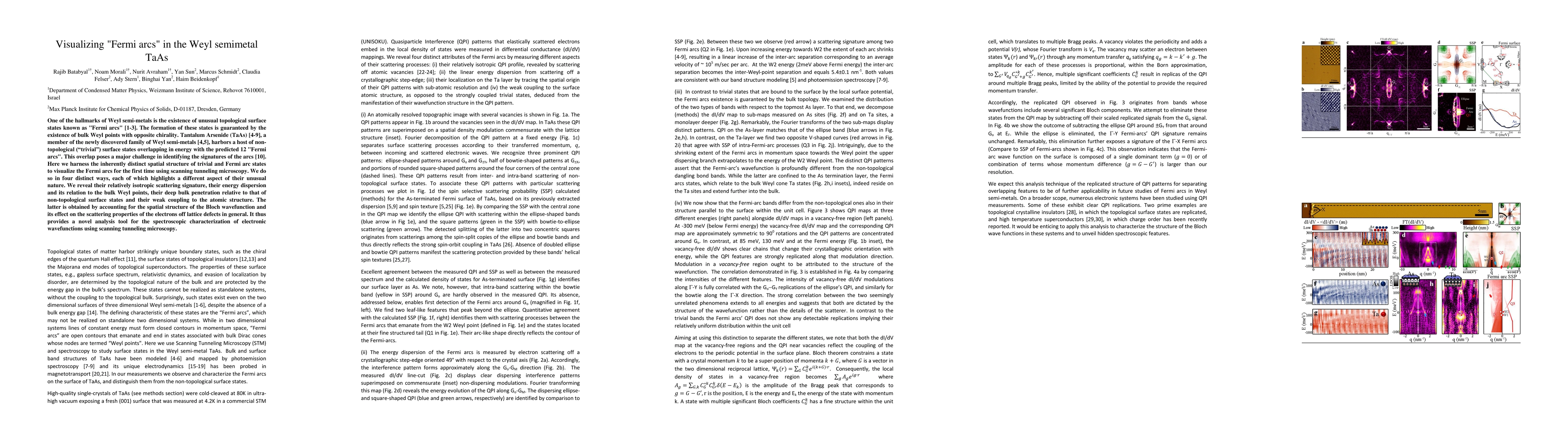 This research visualizes 'Fermi arcs' in the Weyl semimetal TaAs for the first time using scanning tunneling microscopy. It reveals unique aspects of these arcs, such as their scattering behavior, energy dispersion, and deep bulk penetration, providing a novel tool for spectroscopic characterization of electronic wavefunctions.