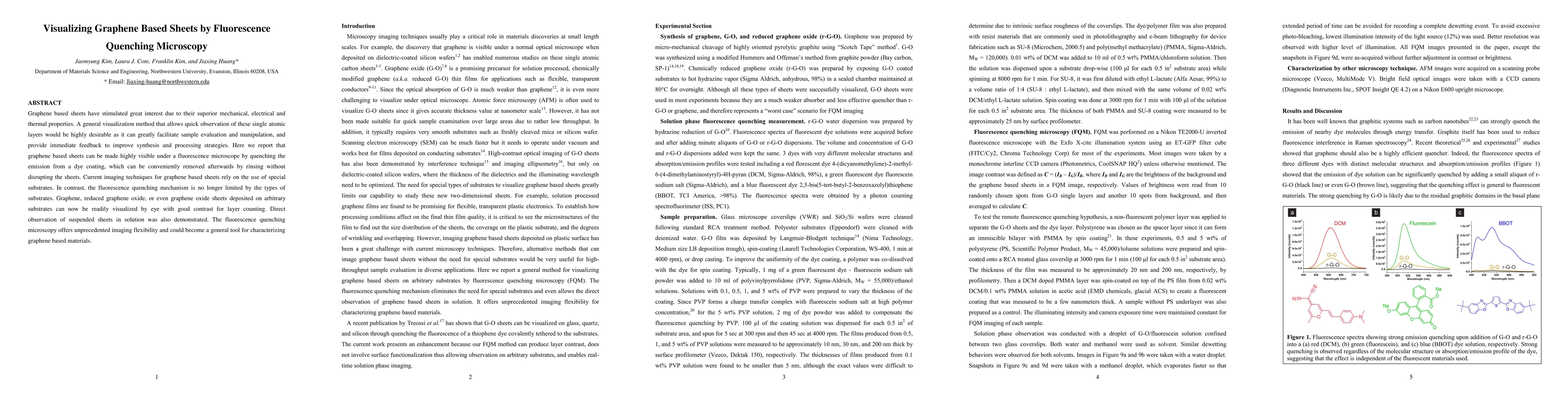 This paper presents a novel fluorescence quenching microscopy technique for visualizing graphene based sheets, enabling clear observation without substrate limitations. The method allows for easy removal of dye coatings, providing flexibility and potential for general characterization of graphene materials.