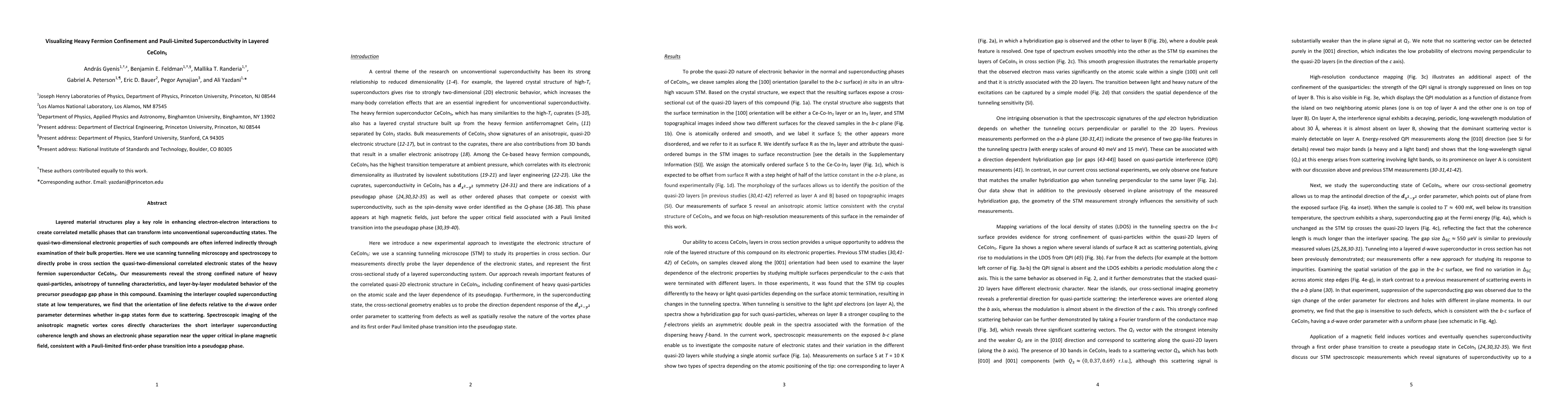 This paper uses scanning tunneling microscopy to visualize the electronic properties of CeCoIn5, revealing confined heavy quasi-particles and anisotropic magnetic vortex cores, which suggest a Pauli-limited phase transition into a pseudogap phase.