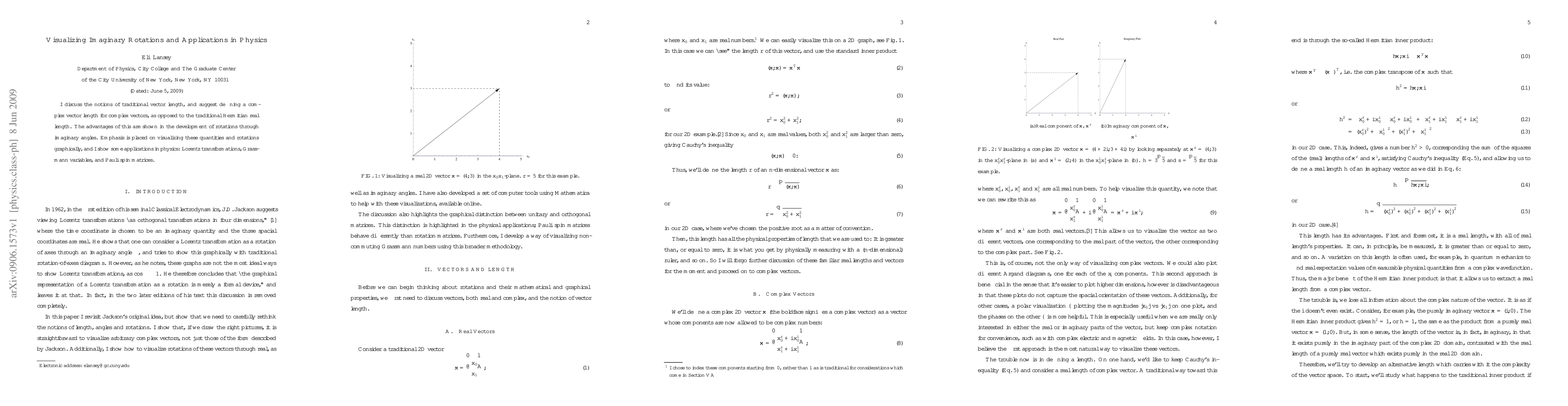 I discuss the notions of traditional vector length, and suggest defining a complex vector length for complex vectors, as opposed to the traditional Hermitian real length. The advantages of this are shown in the development of rotations through imaginary angles. Emphasis is placed on visualizing these quantities and rotations graphically, and I show some applications in physics: Lorentz transformations, Grassmann variables, and Pauli spin matrices.