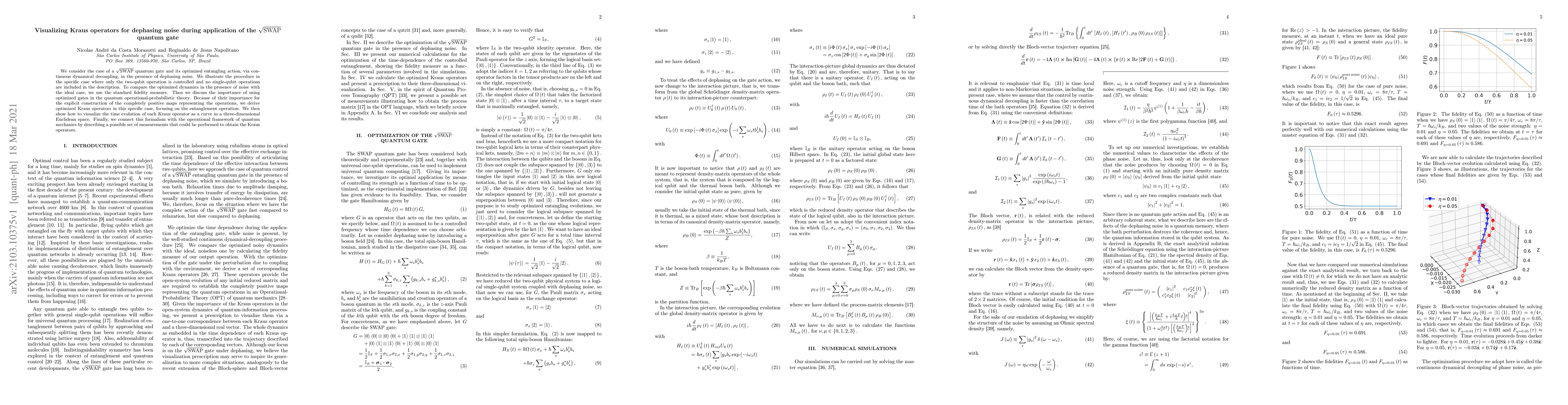 This research paper explores the application of a sqrt(SWAP) quantum gate with dephasing noise using optimized Kraus operators, visualizing their time evolution in three-dimensional space.