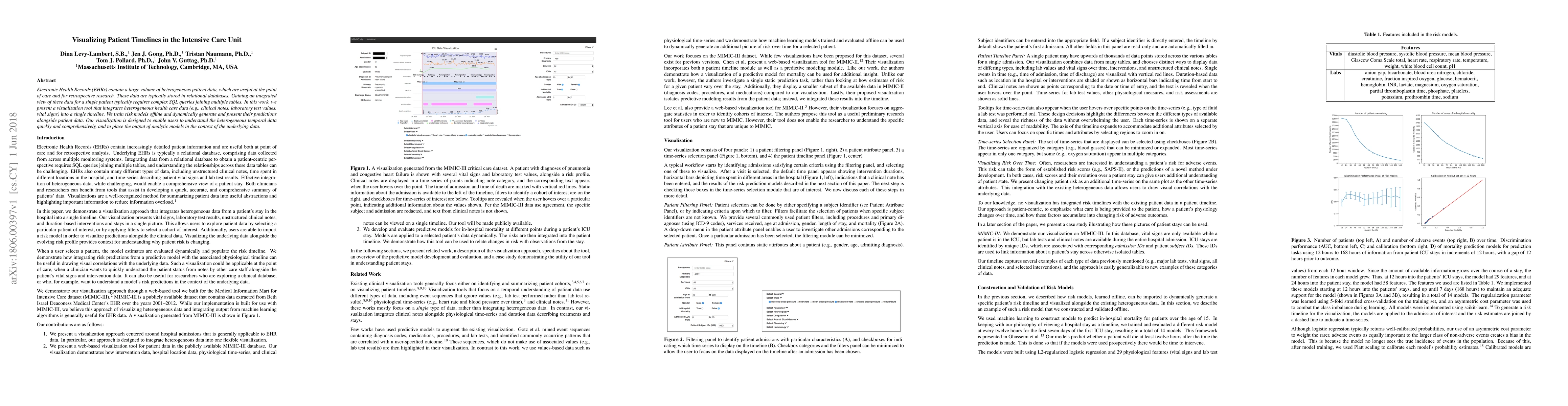 Electronic Health Records (EHRs) contain a large volume of heterogeneous patient data, which are useful at the point of care and for retrospective research. These data are typically stored in relational databases. Gaining an integrated view of these data for a single patient typically requires complex SQL queries joining multiple tables. In this work, we present a visualization tool that integrates heterogeneous health care data (e.g., clinical notes, laboratory test values, vital signs) into a single timeline. We train risk models offline and dynamically generate and present their predictions alongside patient data. Our visualization is designed to enable users to understand the heterogeneous temporal data quickly and comprehensively, and to place the output of analytic models in the context of the underlying data.