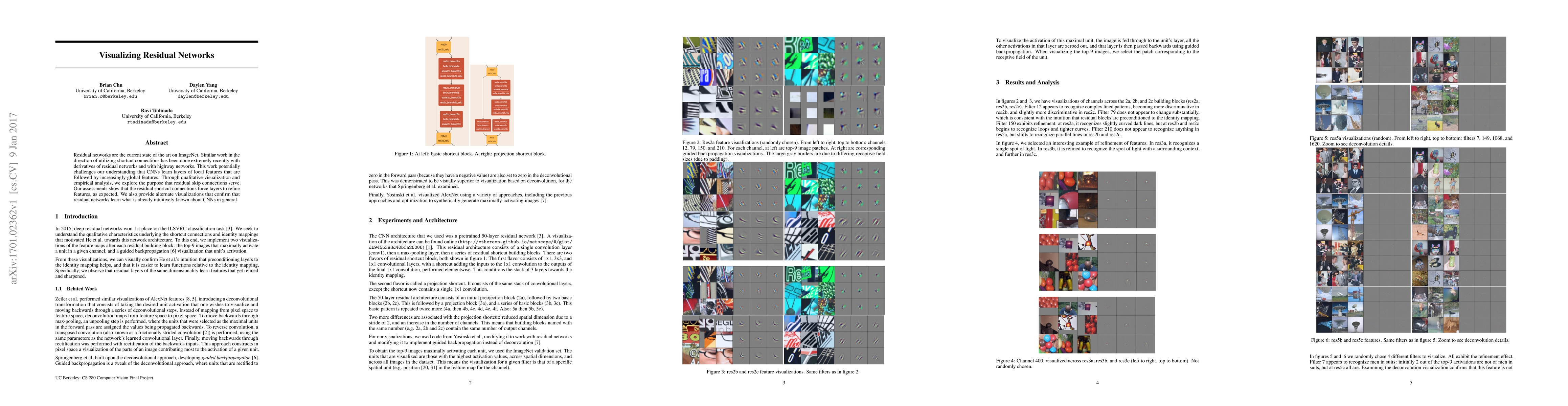 This work distinguishes itself by providing empirical evidence and visualizations that highlight the effectiveness of residual connections, offering a deeper understanding of how Residual Networks learn features.