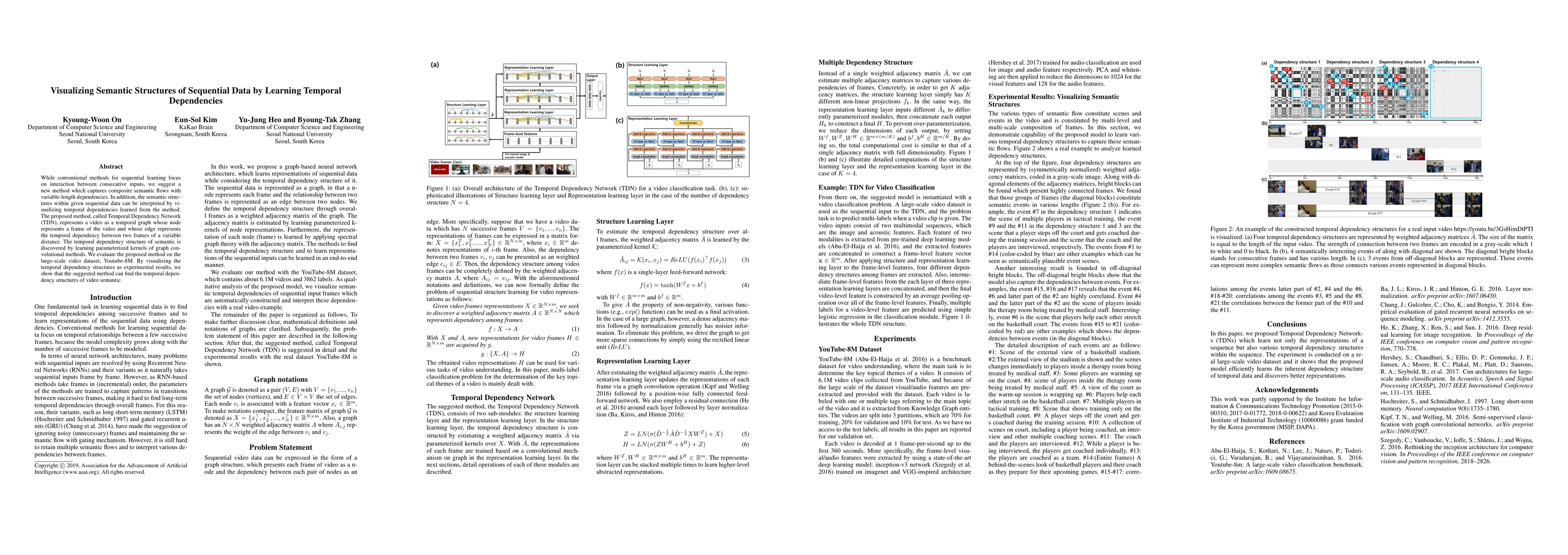The paper proposes a new method called Temporal Dependency Network (TDN) to capture variable-length temporal dependencies in sequential data, represented as a temporal graph. The method is evaluated on the Youtube-8M dataset, demonstrating its ability to visualize and interpret the semantic structures within videos.