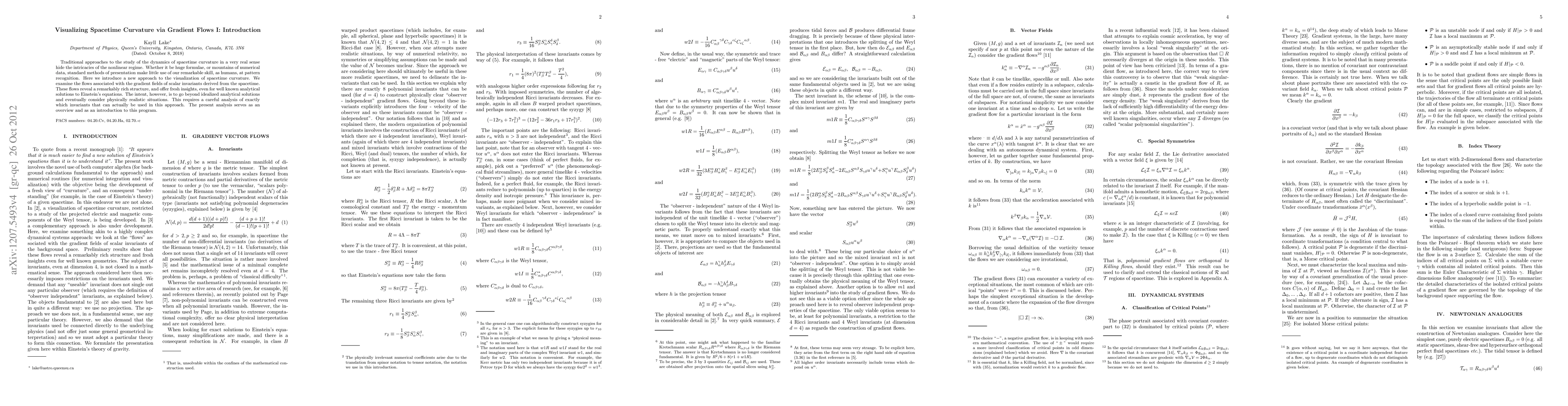 Traditional approaches to the study of the dynamics of spacetime curvature in a very real sense hide the intricacies of the nonlinear regime. Whether it be huge formulae, or mountains of numerical data, standard methods of presentation make little use of our remarkable skill, as humans, at pattern recognition. Here we introduce a new approach to the visualization of spacetime curvature. We examine the flows associated with the gradient fields of invariants derived from the spacetime. These flows reveal a remarkably rich structure, and offer fresh insights even for well known analytical solutions to Einstein's equations. This paper serves as an overview and as an introduction to this approach.